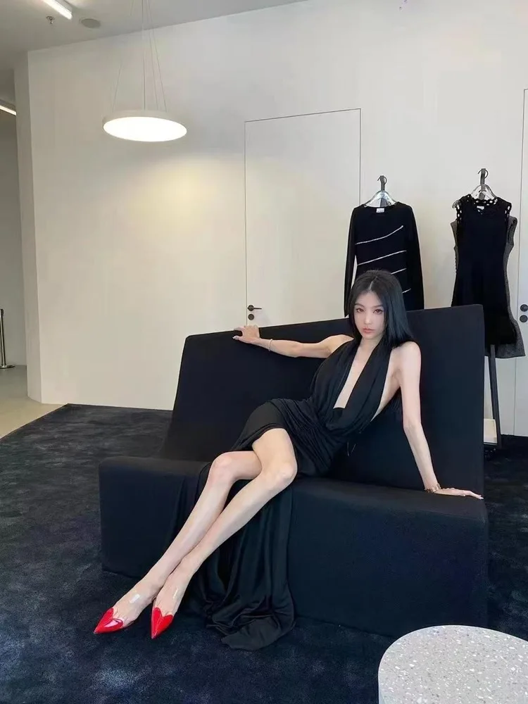 2025 Spring And Summer Pointy Stiletto Heels Wearing Slippers Transparent Female Sandals