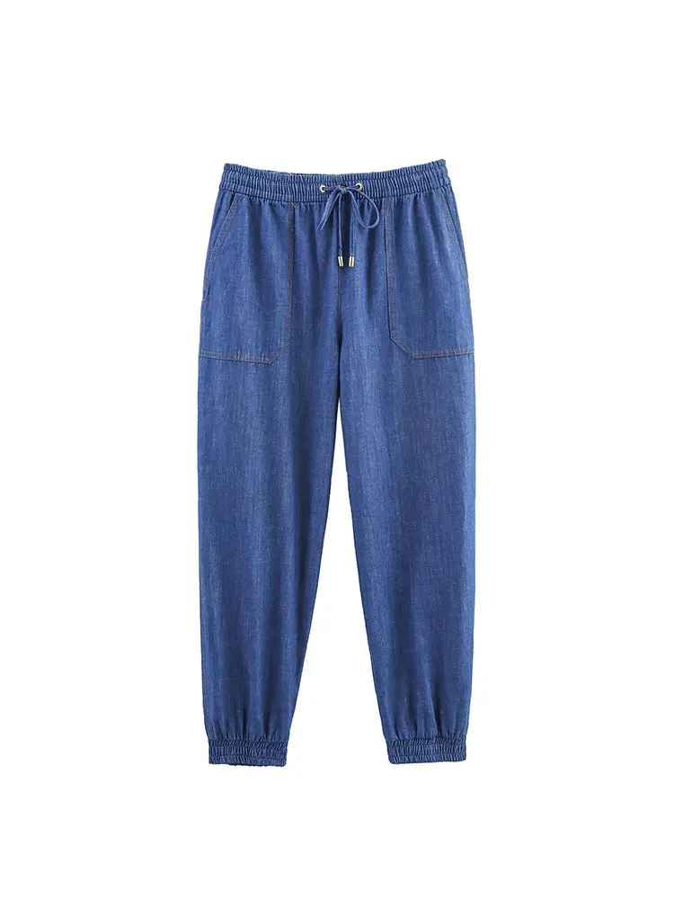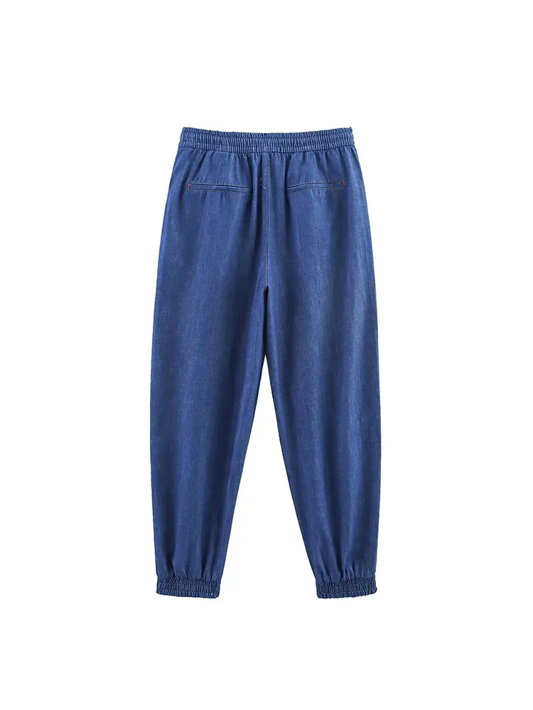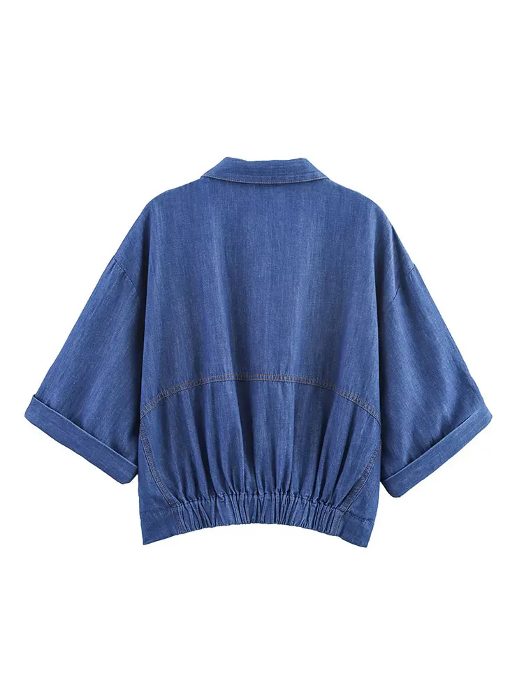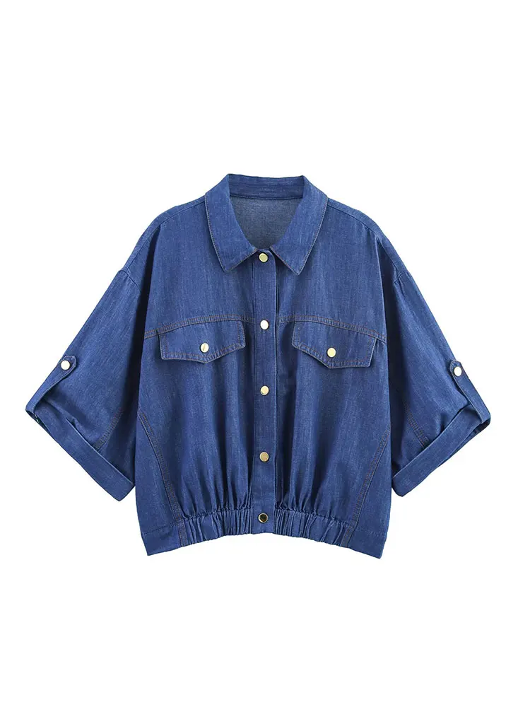 2025 Summer Casual Women Suit Denim Single Breasted Short Sleeve Shirt Elastic Waist Pants Fashion 2-piece Sets