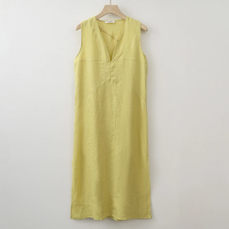2025 Summer Women Solid Linen V Neck Sleeveless Fashion Dress Split Tank Dress