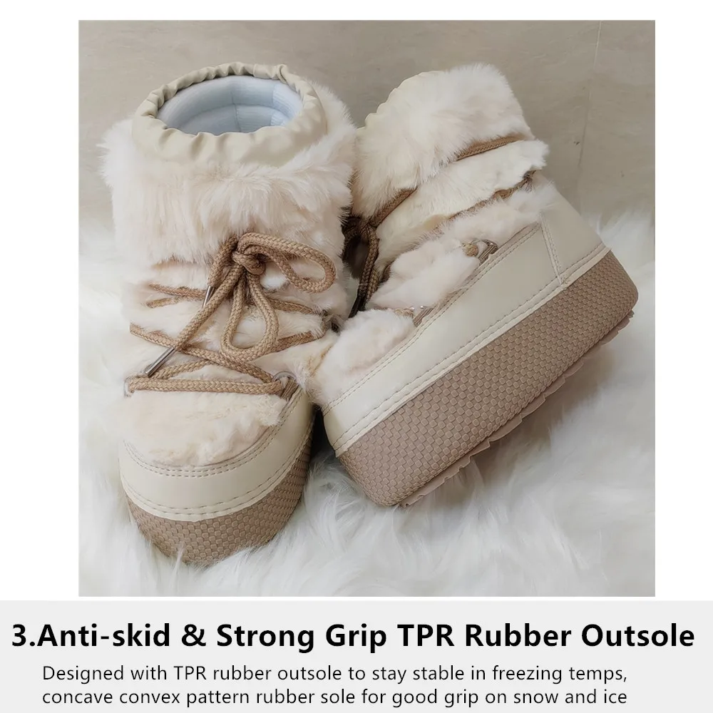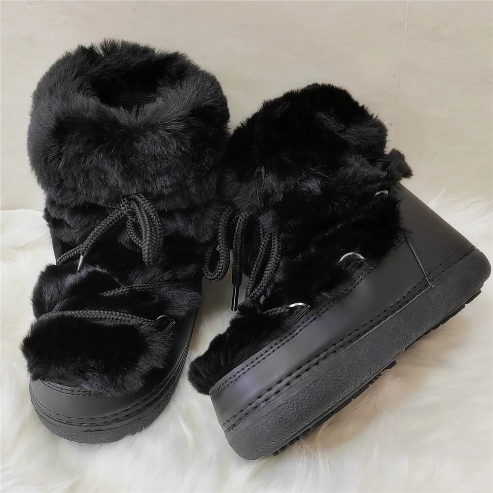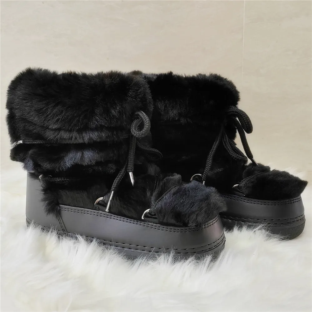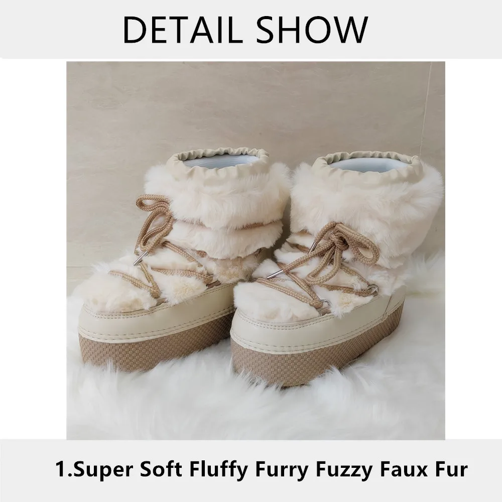 2025 Winter Ankle Boots for Women Platform Antiskid Waterproof Ski Boots Luxury Fluffy Furry Fur Boots Woman’s Ankle Booties
