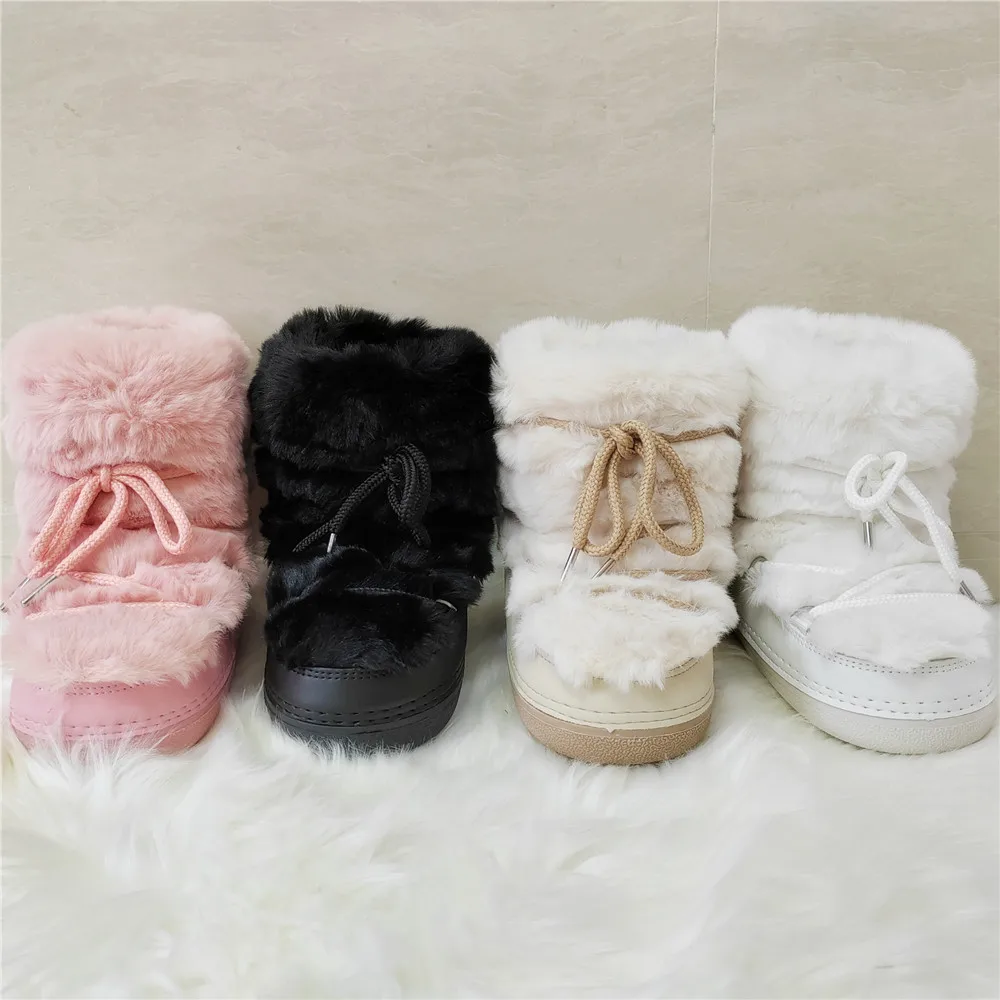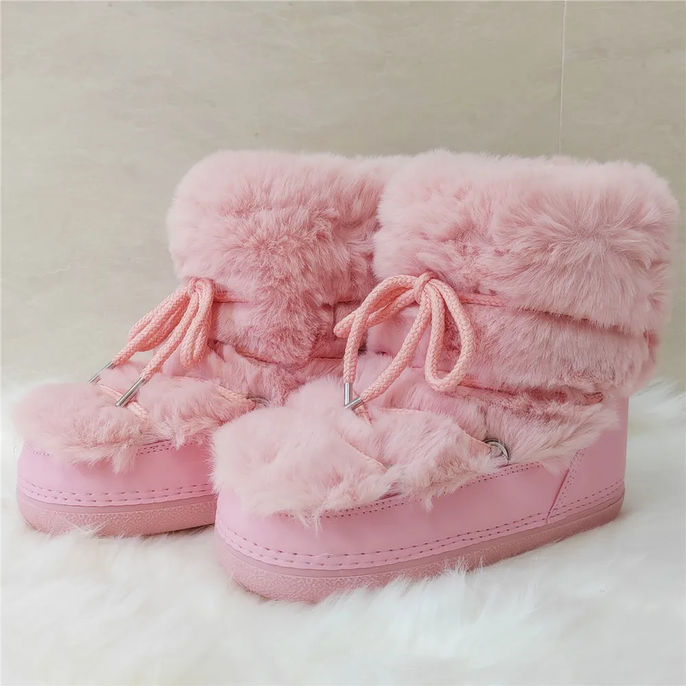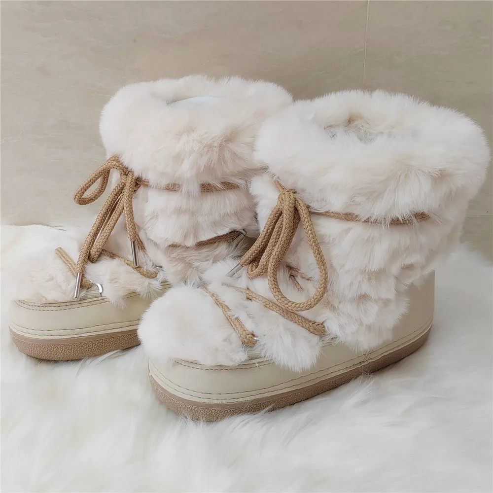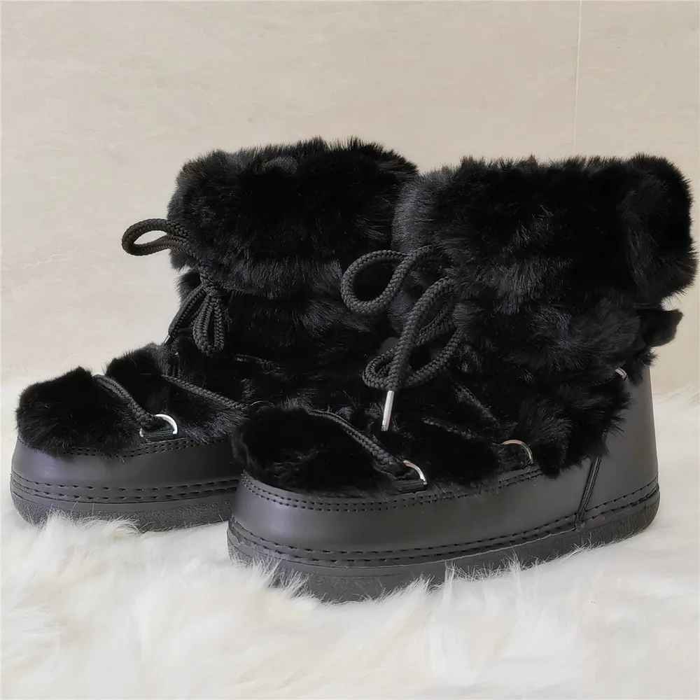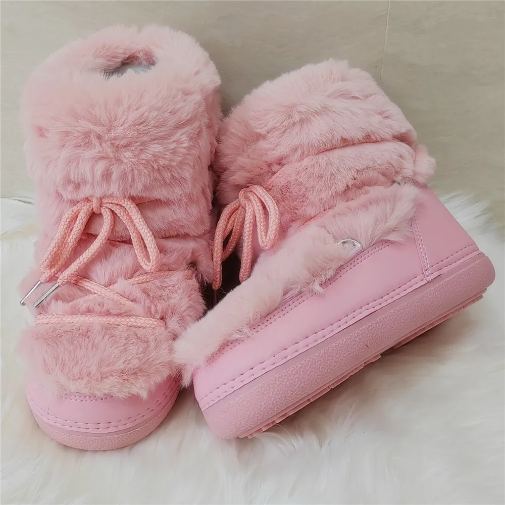 2025 Winter Ankle Boots for Women Platform Antiskid Waterproof Ski Boots Luxury Fluffy Furry Fur Boots Woman’s Ankle Booties
