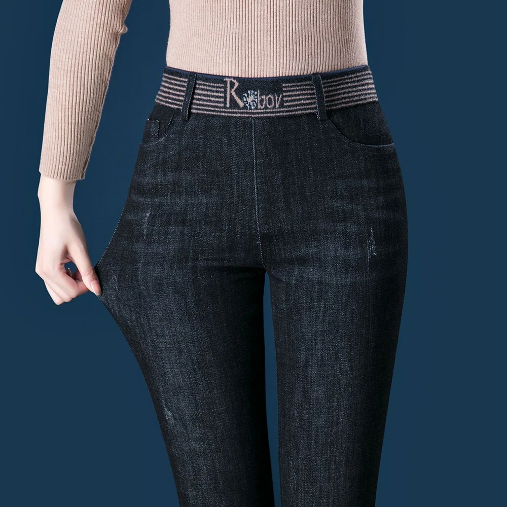 2025 Winter New Fleece Hot Lining Thicken Warm Denim Jeans Women Skinny High Waist Pencil Feet Stretchy Tight Jeans Oversize 6XL