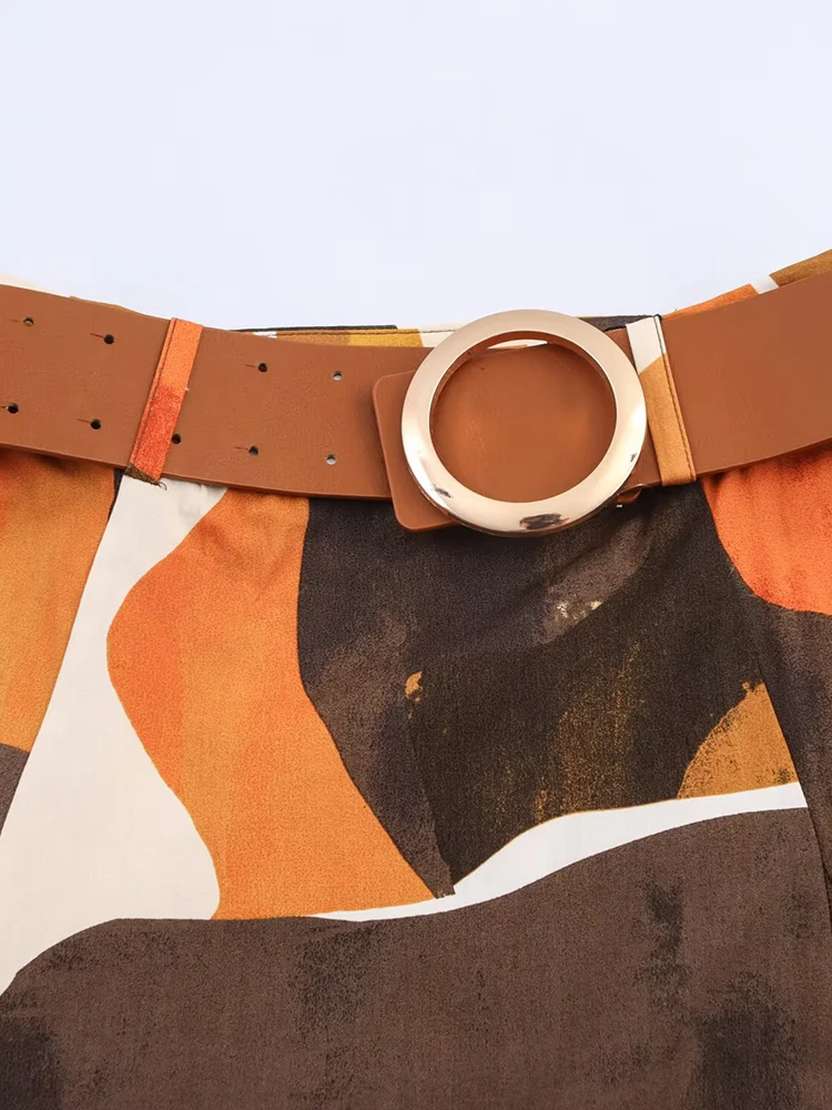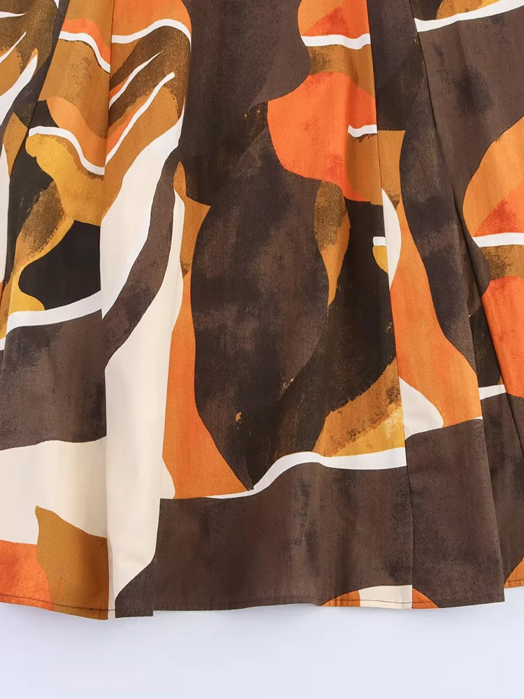2025 Women Summer MIDI Skirts Vintage Print Poplin Belt Female Elegant Street A-Line Skirt Clothing