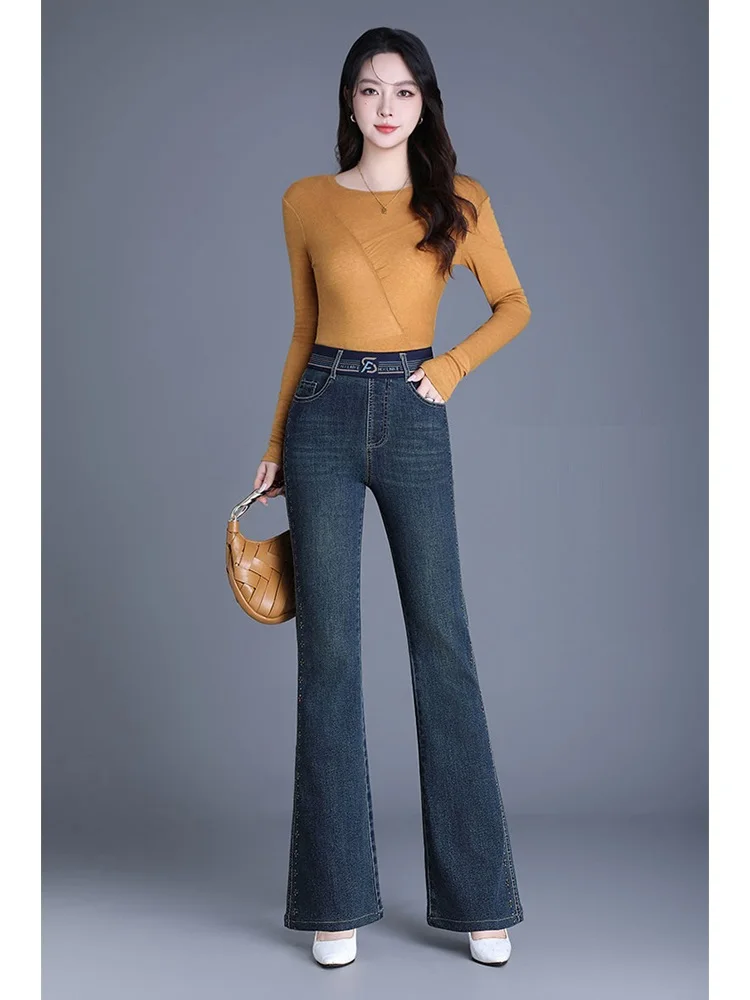 2025 Women’s Autumn and Winter New High waisted Micro flared Jeans Embroidered Loose Elastic Casual Pants