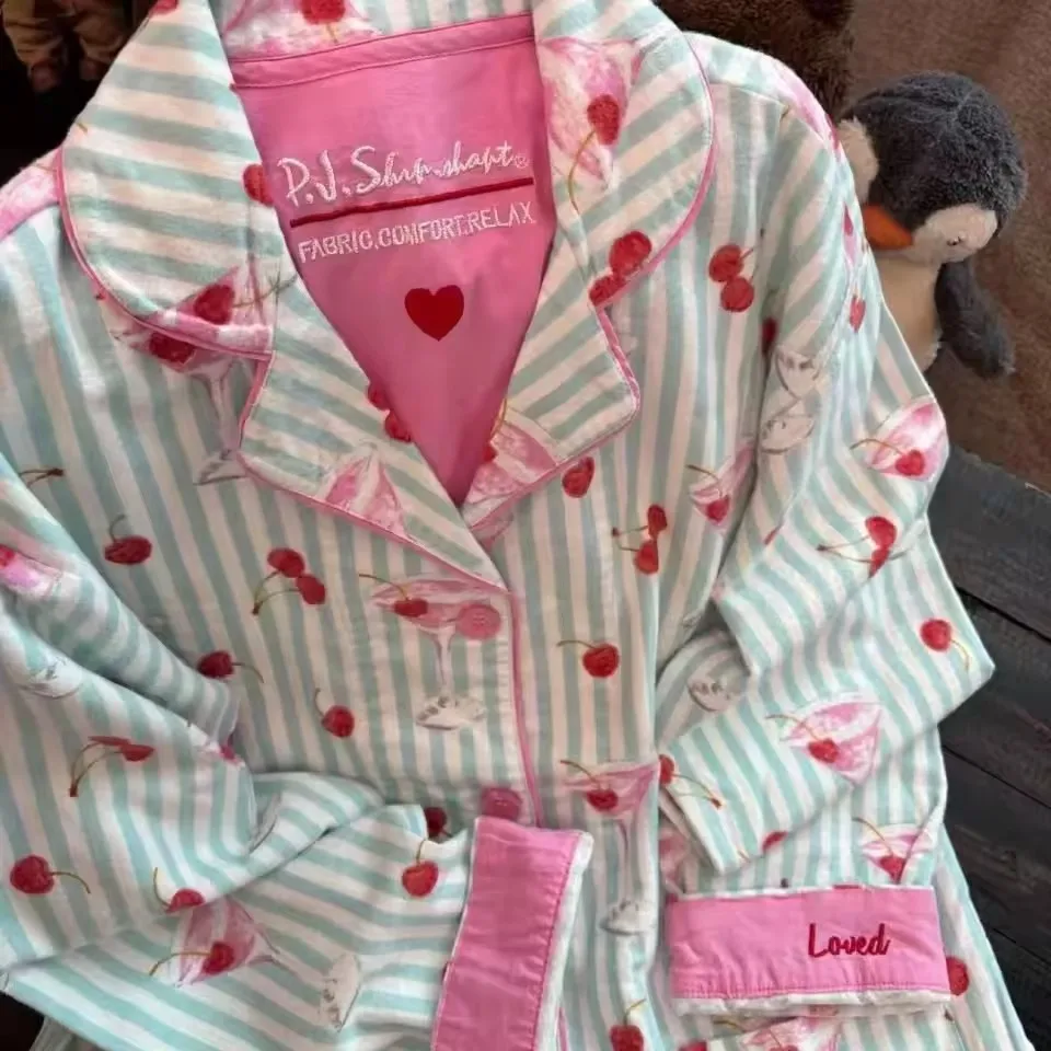 2026 Autumn New Home Clothes Lady Cotton Pajamas Suit Cute Cartoon Print Nightwear Luxury Shirt Pants Girlfriend Gift Loungewear