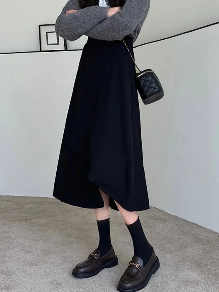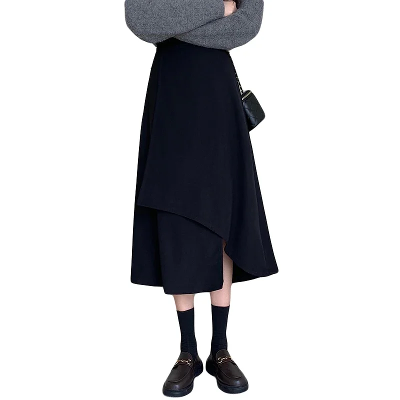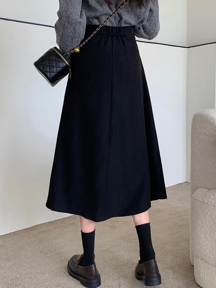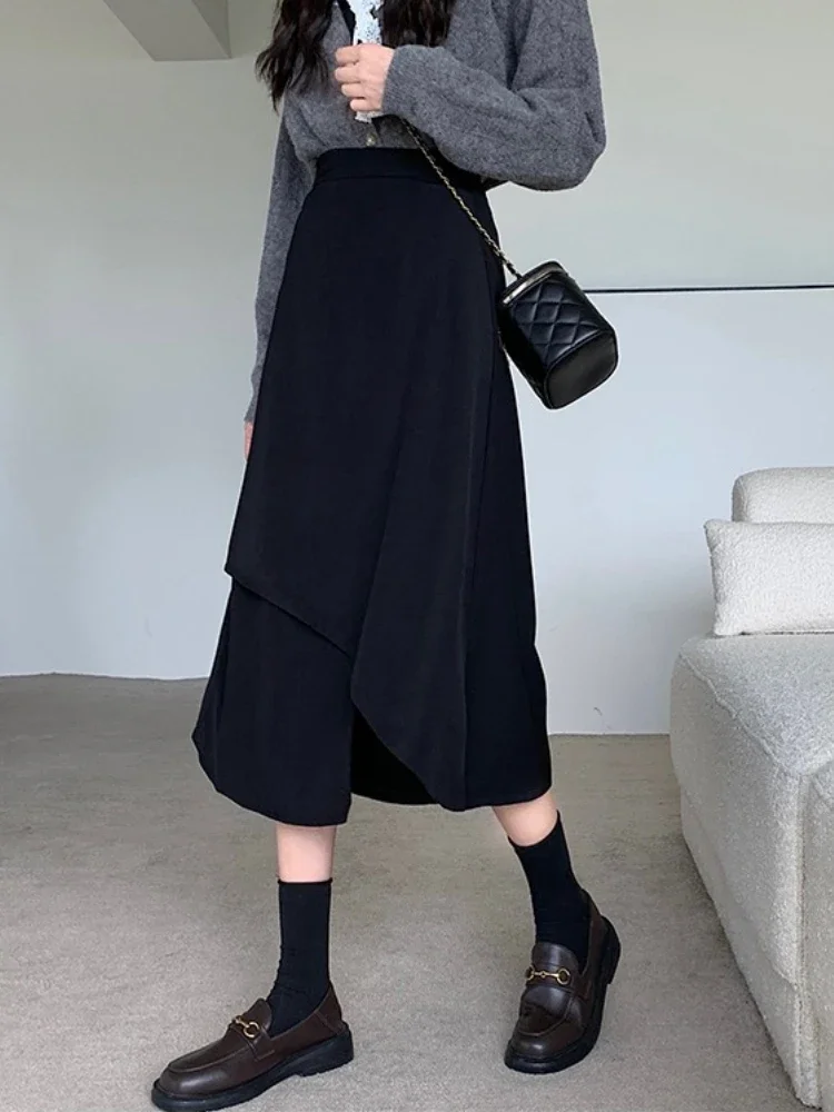 2026 Autumn Winter Plus Size High-Waisted Black Bodycon Skirt Medium-Length Irregular Pleated Umbrella Skirt for Big Size Women