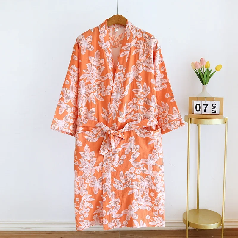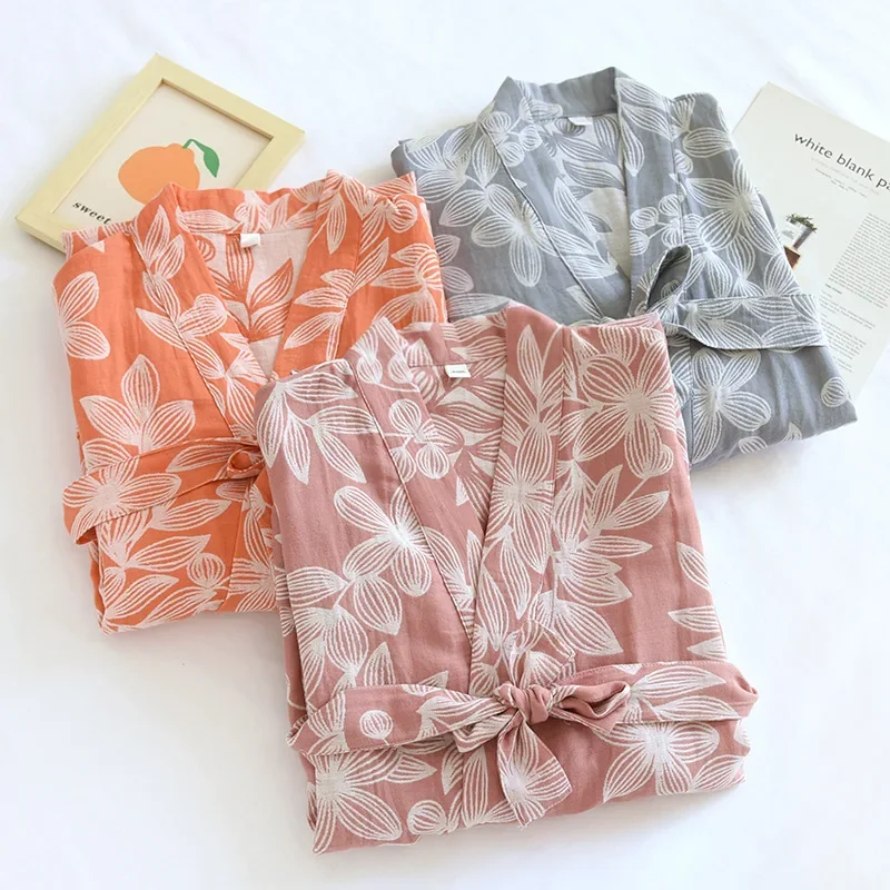 2026 Japanese Kimono Women’s New 100% Cotton Loose Bathrobe Lace up Kimono Bathrobe Sweat Steaming Gown Pajama Ladies Sleepwear
