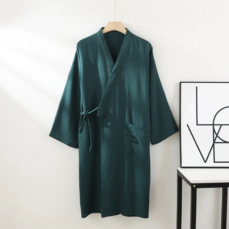 2026 Japanese New Spring/Summer Couple Kimono Robe 100% Cotton Crepe Cloth Men’s and Women’s Bathrobe Thin Home Sleeping Robe