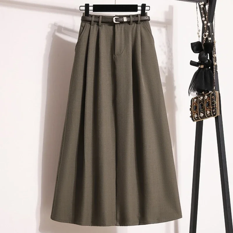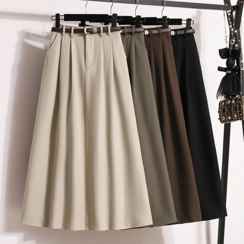 2026 Korean High Waisted Suit Pleated Skirt Plus Size Skirts for Women Spring Elegant Solid Women’s Wrap Umbrella Skirts