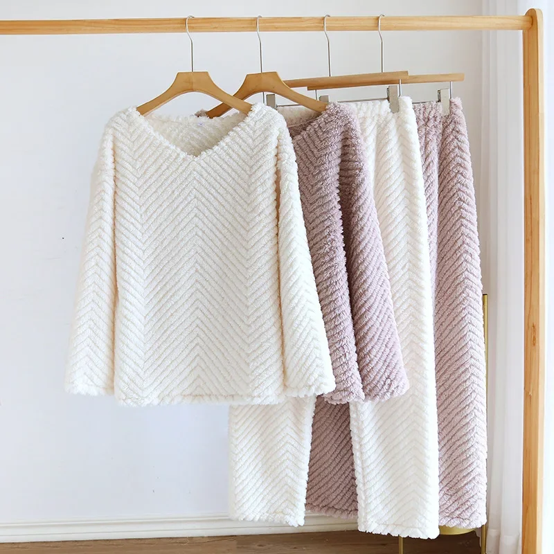 2026 New Autumn/Winter Women’s Pajama Set, Flannel Thickened and Warm, Coral Plush Cute Home Fur Two Piece Set Sleepwear