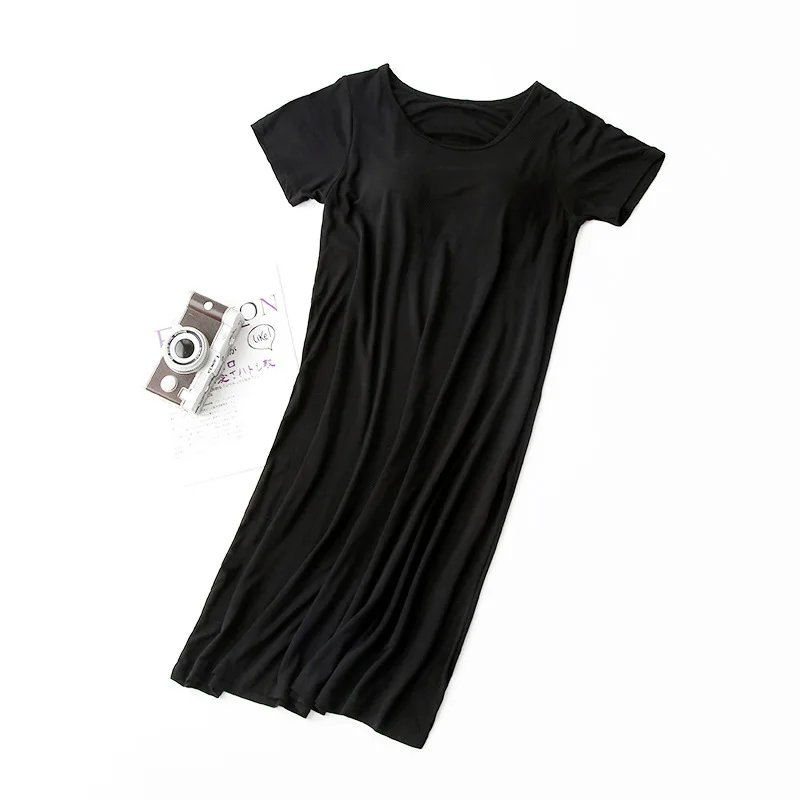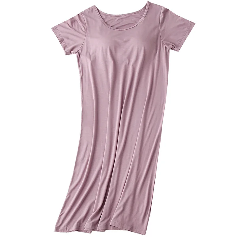 2026 new ladies’ long nightdress, half-sleeved skirt with chest pad, mid-length plus size home nightdress