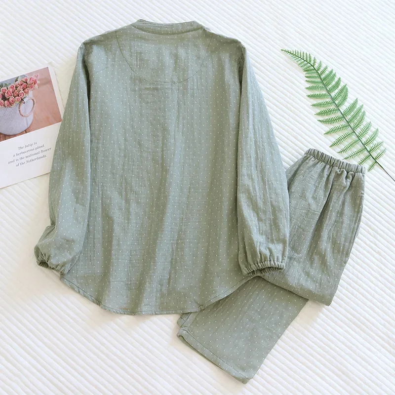 2026 new spring and autumn women’s pajamas set 100% cotton long-sleeved trousers two-piece simple casual home clothes sleepwear
