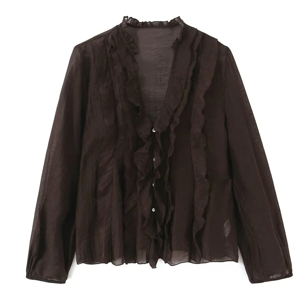 2026 new women’s fashion casual temperament simple long sleeved V-neck design layered decorative shirt