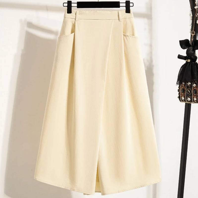 2026 Solid Color Big Size Half Skirt Women Leisure A- Line with Pocket Chinese Origin Simple Plus Size Mid Length Skirt