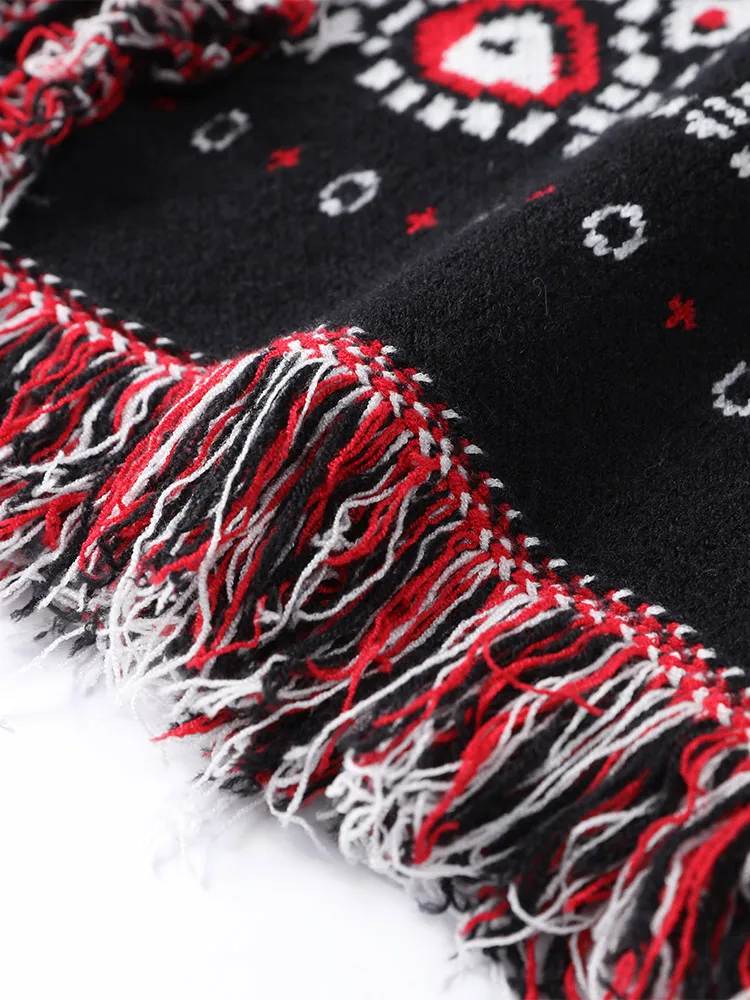 2026 Spring Tassel Knitted Jacquard Women’s Cardigans Loose Patchwork V-neck Long Sleeve Thick Warm Sweater Lady New Knitwear