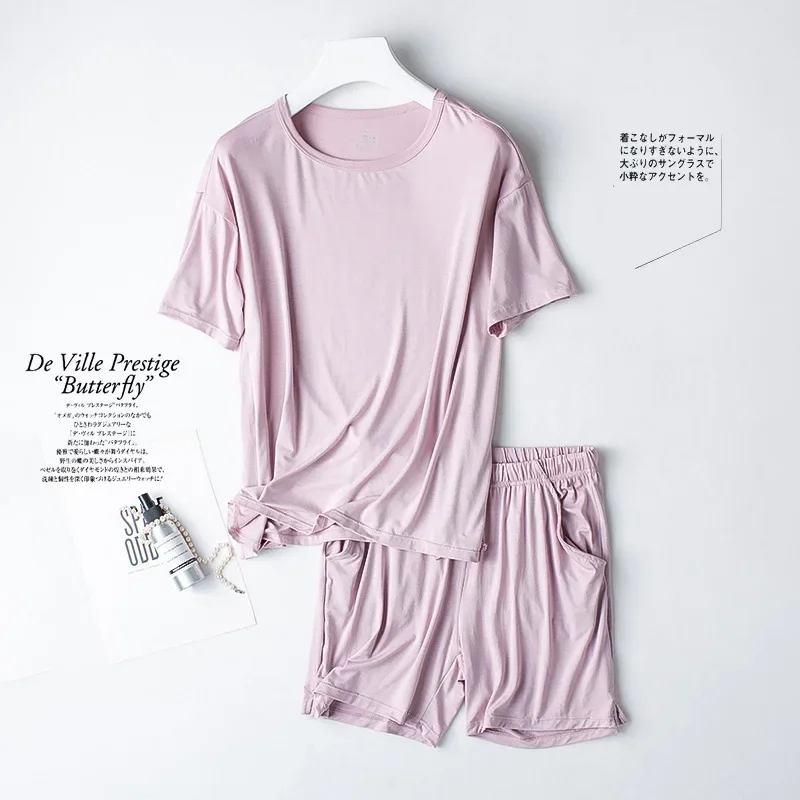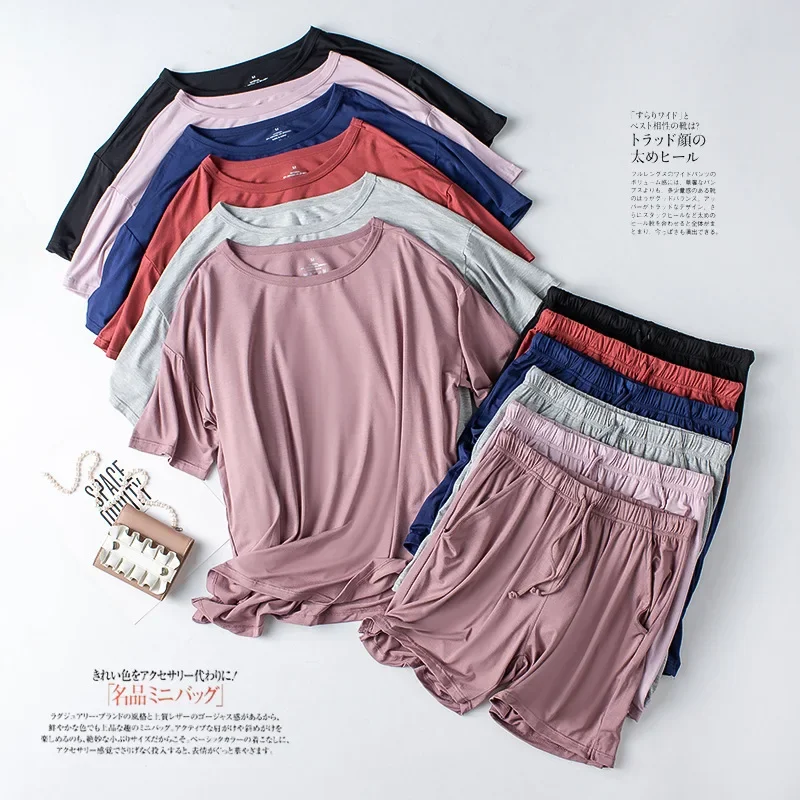 2026 Summer New Pajama Set Women’s Modal Short Sleeve Shorts Two Piece Set Ladies Solid Loose Large T-shirt Homewear Women Shirt