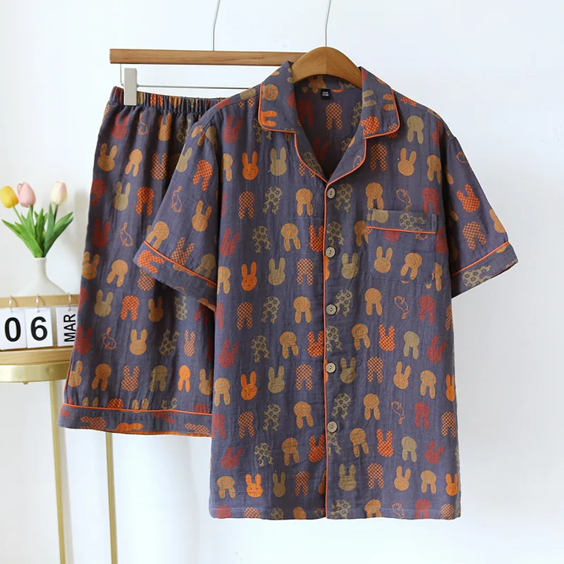 2026 Verão Novo Casal Shorts de Manga Curta Duas Peças Conjunto de 100% Algodão Crepe Tecido Homens e Mulheres Grande Homewear