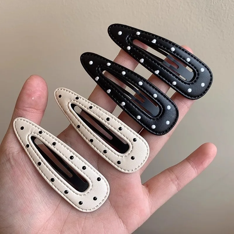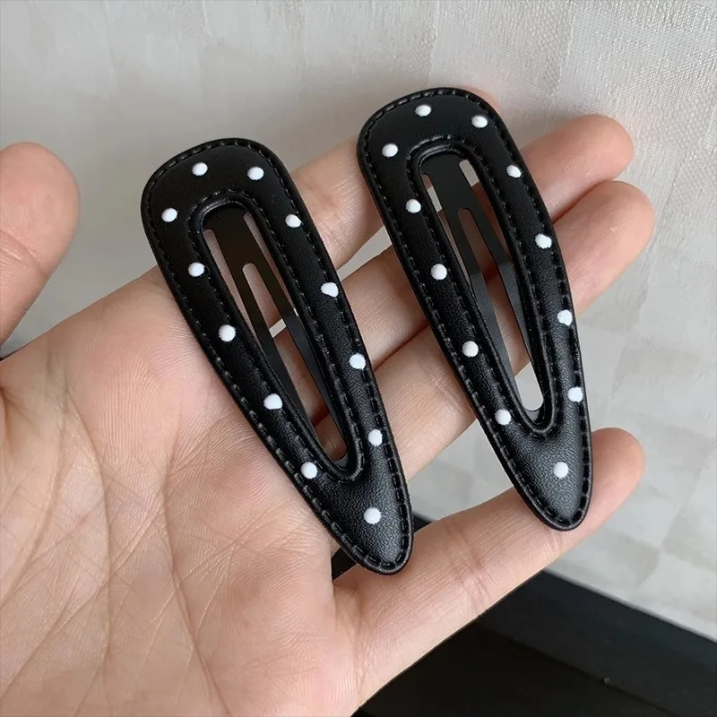 2Pcs Bla White Polka Dot Leather Hair Clips Women’s Bangs BB Clips Sweet Cool Simple Hairpin Girl Hair Accessories