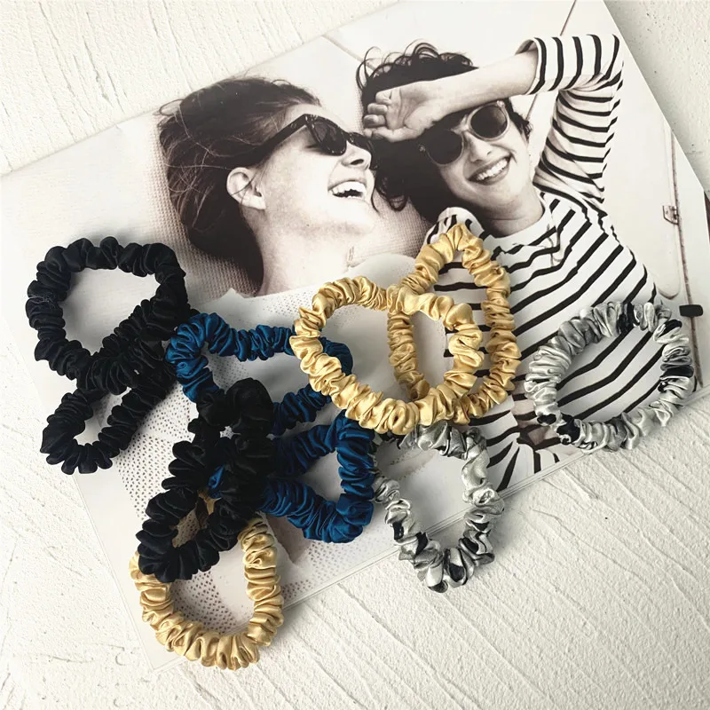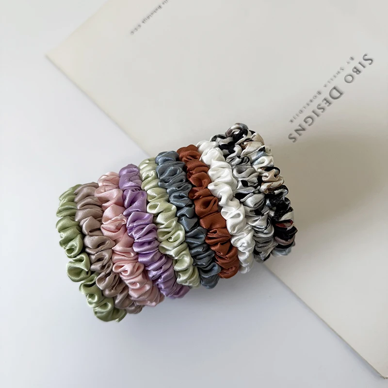 3PCS 100% Real Silk Hair Skinnies Scrunchie Set Elastic Band Ponytail Holders for Women Girls Silk Hair Ties Width 1.3cm