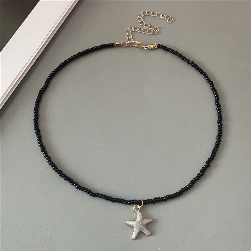 4 Colors Fashion Starfish Choker Necklace for Men Women White Black Blue Colorful Rice Beads Gift for Friend Short Collar