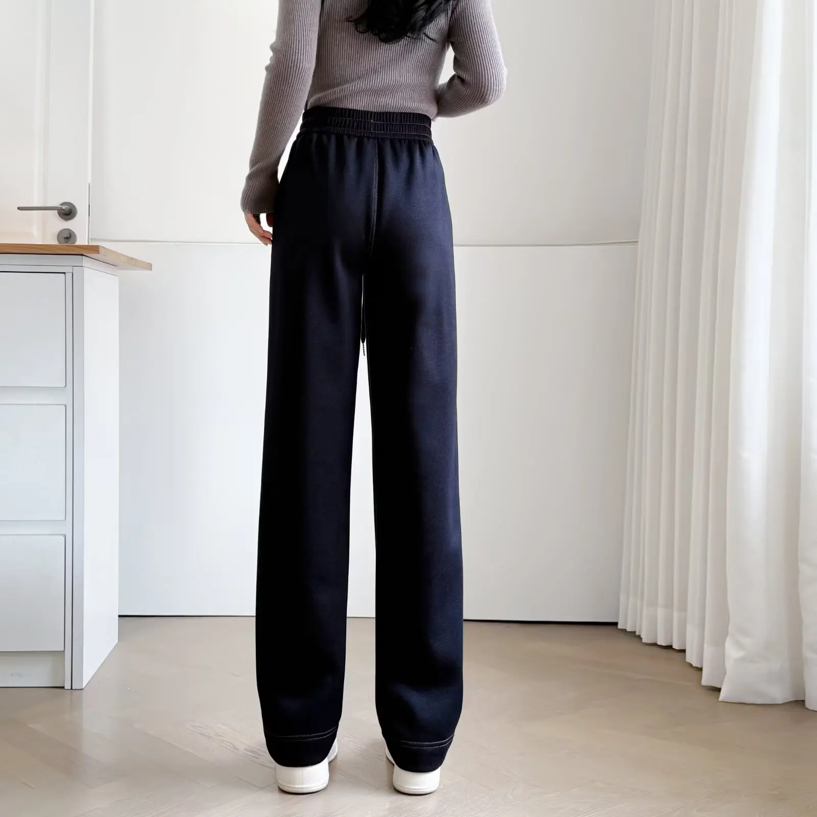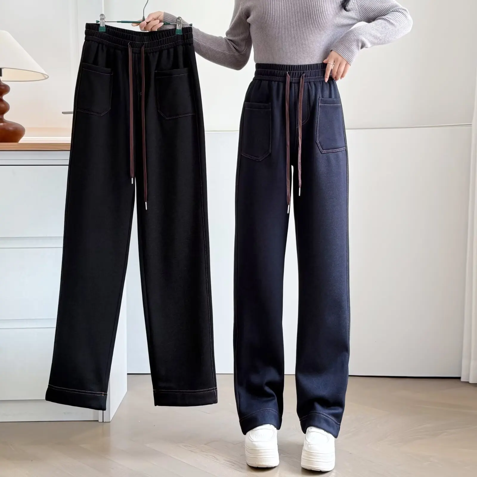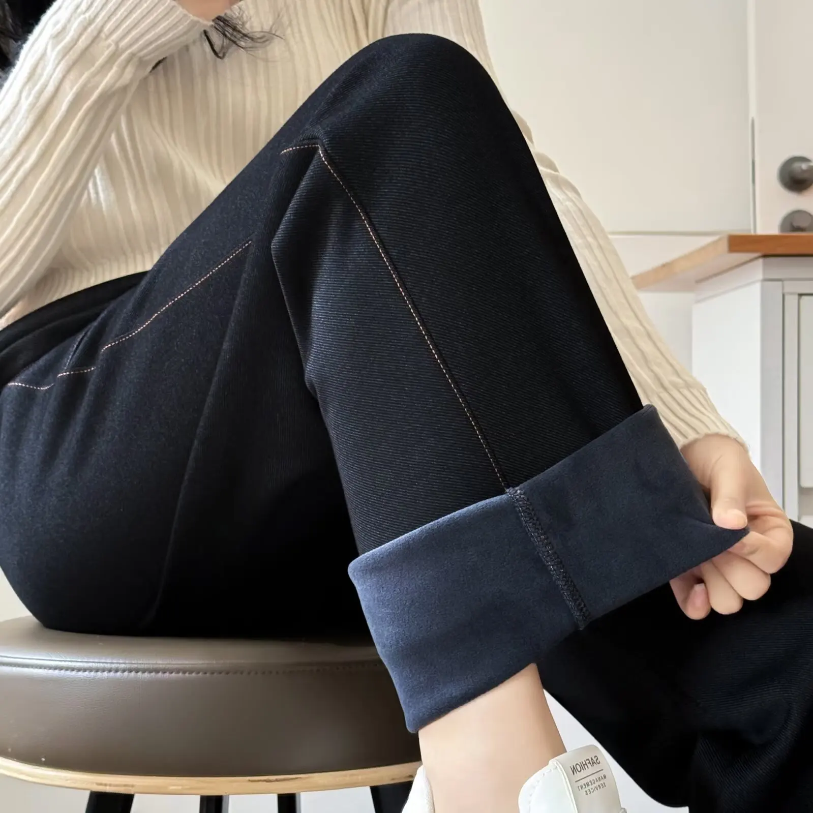 4XL Fashion Plus Size Woman Clothing Straight Leg Jeans Winter Retro Drawstring Waist Fleece Warm Denim Casual Long Pants 26019