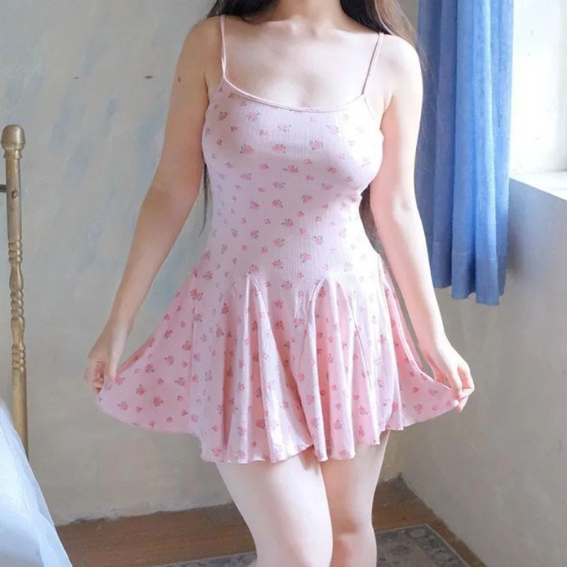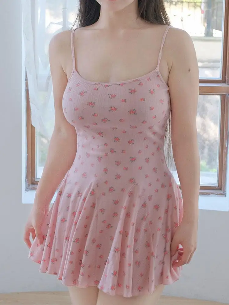 4XL150kg Oversized Floral Night Dress Sexy Camisole Slim A-line Mini Dress Plus Size Sweet Girl Lingerie Chemise Teddy Sleepwear
