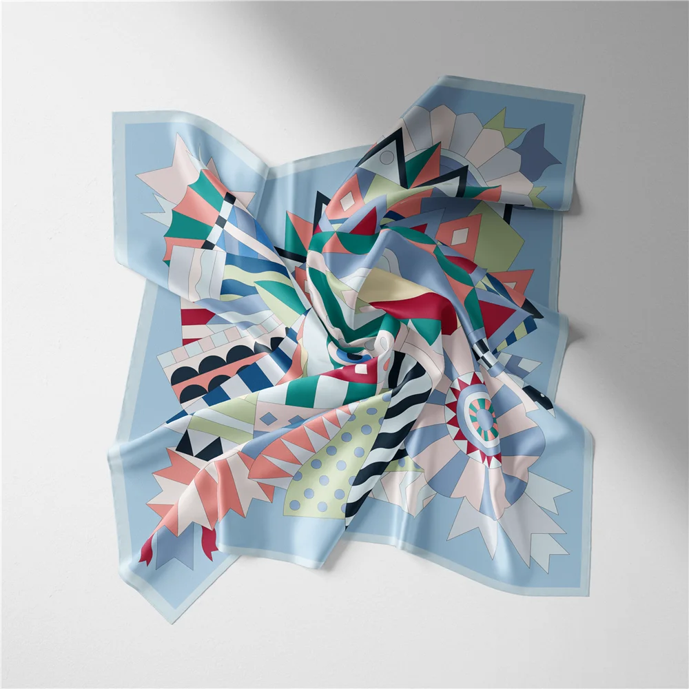 53cm Brand Square Scarf Women Design Horse Luxury Silk Scarf Bandana Headband Fashion Hijab Neckerchief For Ladies 2024 New
