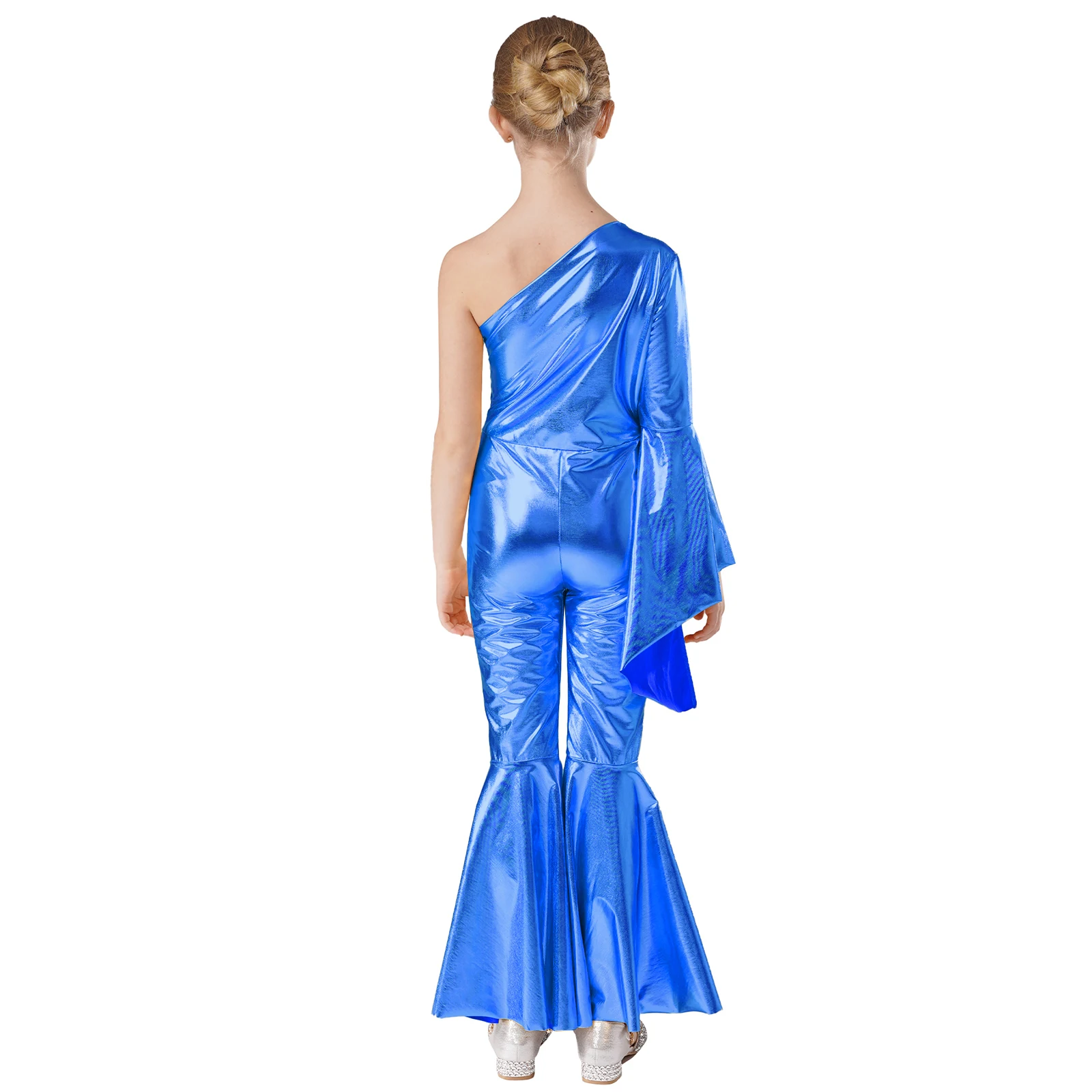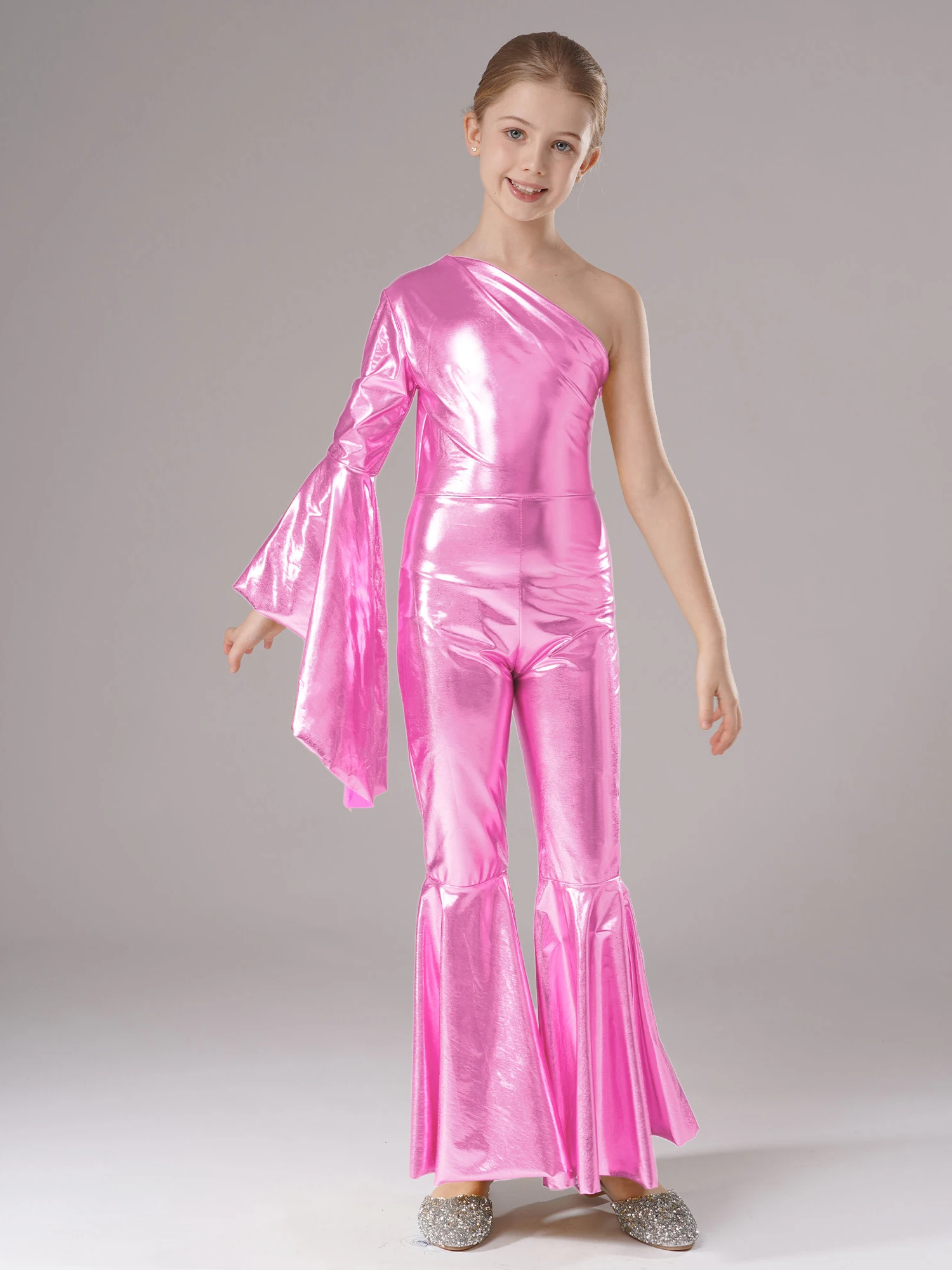 Flare sleeve jumpsuit for girls, one shoulder and bell-bottom design makes your girl looks eye-catching in the crowd.