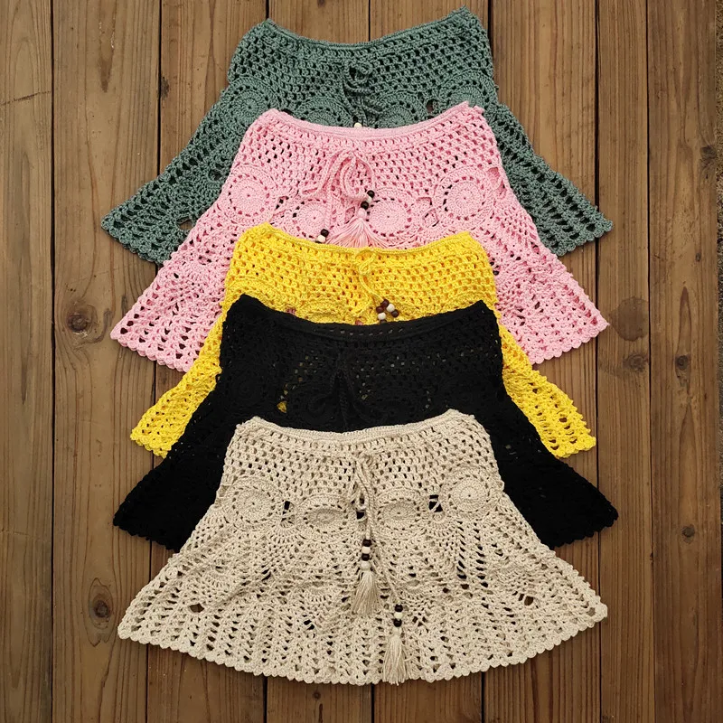 8 Color Hand Crochet Florens Skirt Women Sexy Beach cover up Skirt Boho Style elastic waistband