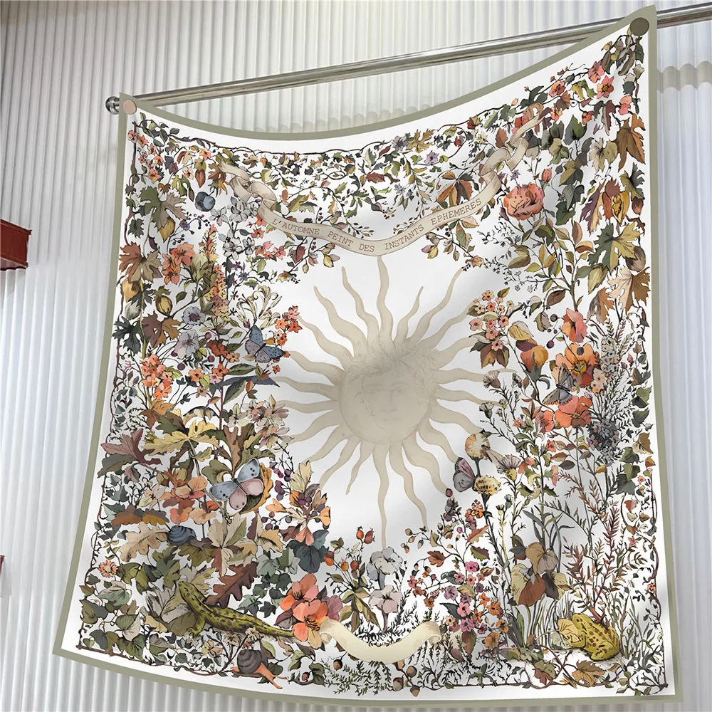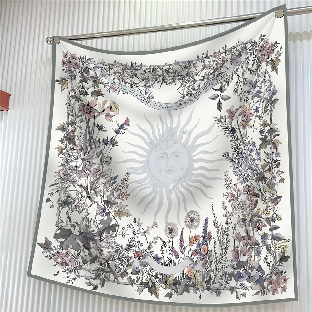 90cm Brand Square Scarf Women Fashion Floral Twill Silk Scarf Shawl Hijab Luxury Bandana Foulard Neckerchief Head Scarf For Lady