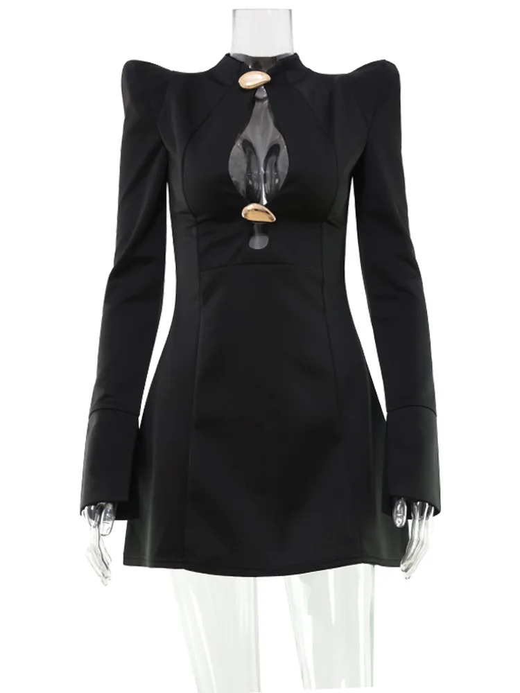 Ahagaga Elegant Women’s Mini Dresses Solid Sexy Bodycon Slim Fit Hollow Out Regular Long Flare Sleeve A Line Trend Casual Female