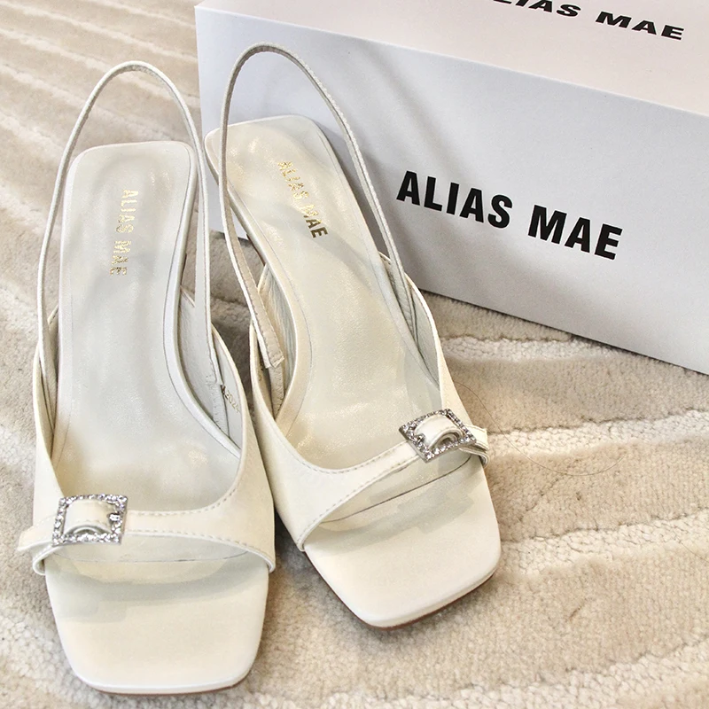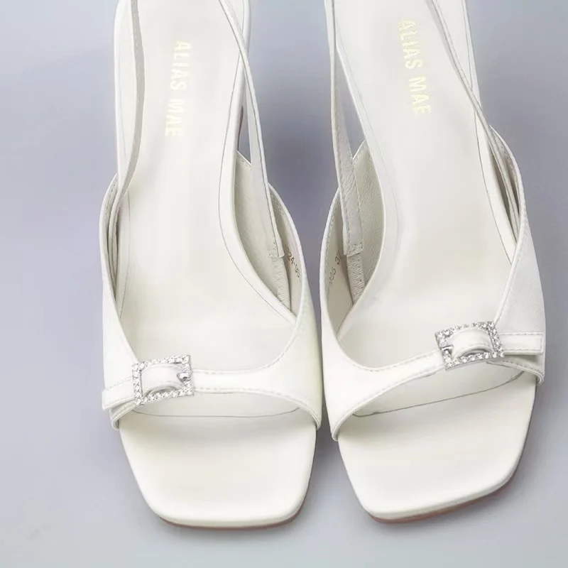 ALIAS MAE 2024 Summer New Silk Fine Heel with Diamond Buckle Women’s Outdoor Street Photography Exquisite Versatile High Heels
