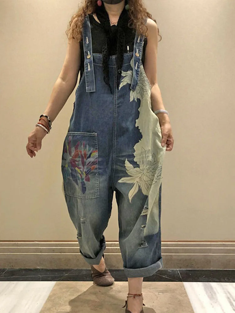 AmaxluluE 2025 Females Fashion Overalls Ladies Summer Printed Denim Pantalons Vintage Casual Jeans Womens Loose Vintage Trousers