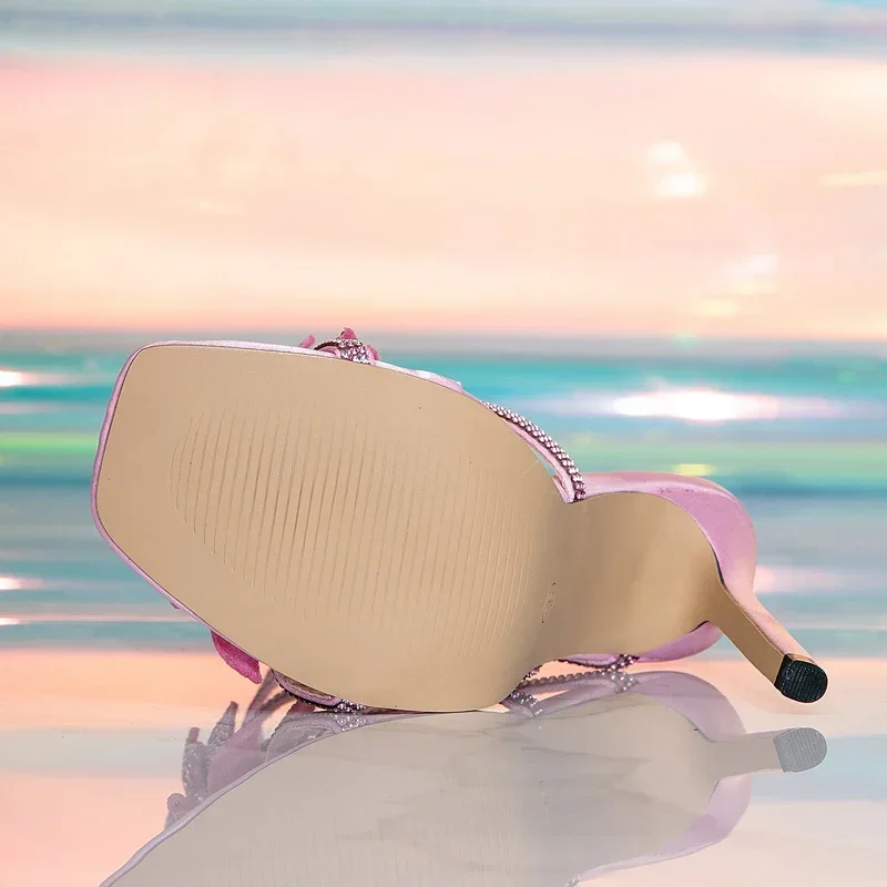 Aneikeh Sexy Crystal pink wedding shoes Gladiator Sandals Women Elegant Party High Heels Summer Open Toe Ladies Dress Party Shoe