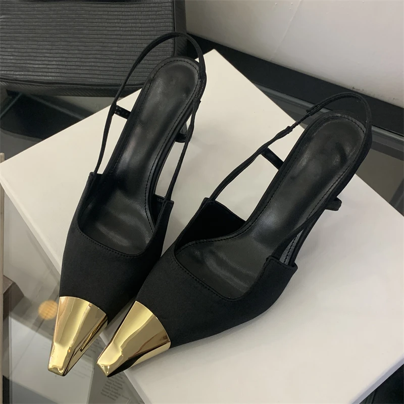 Aneikeh Street Style Sexy Pointed Toe Slingbacks Pumps Women Stripper Sandals High Heels Female Banquet Shoes Brown Kitten Heels