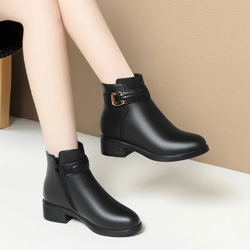 Anti-slip Soft bottom Keep WarmWomen Leather Pu Ankle Waterproof Rubber Walking Shoes Girls Fashion Ladies Winter Short Boots