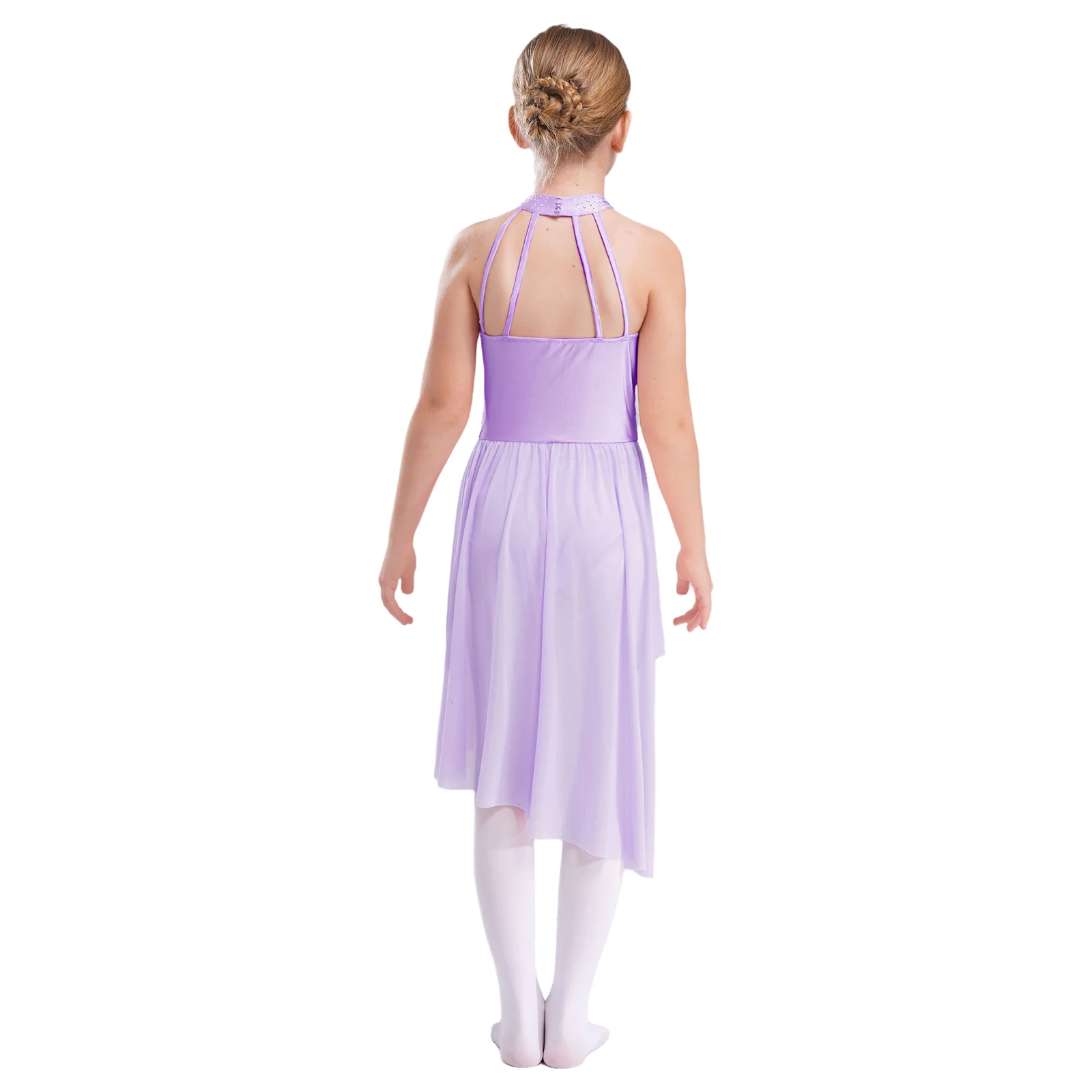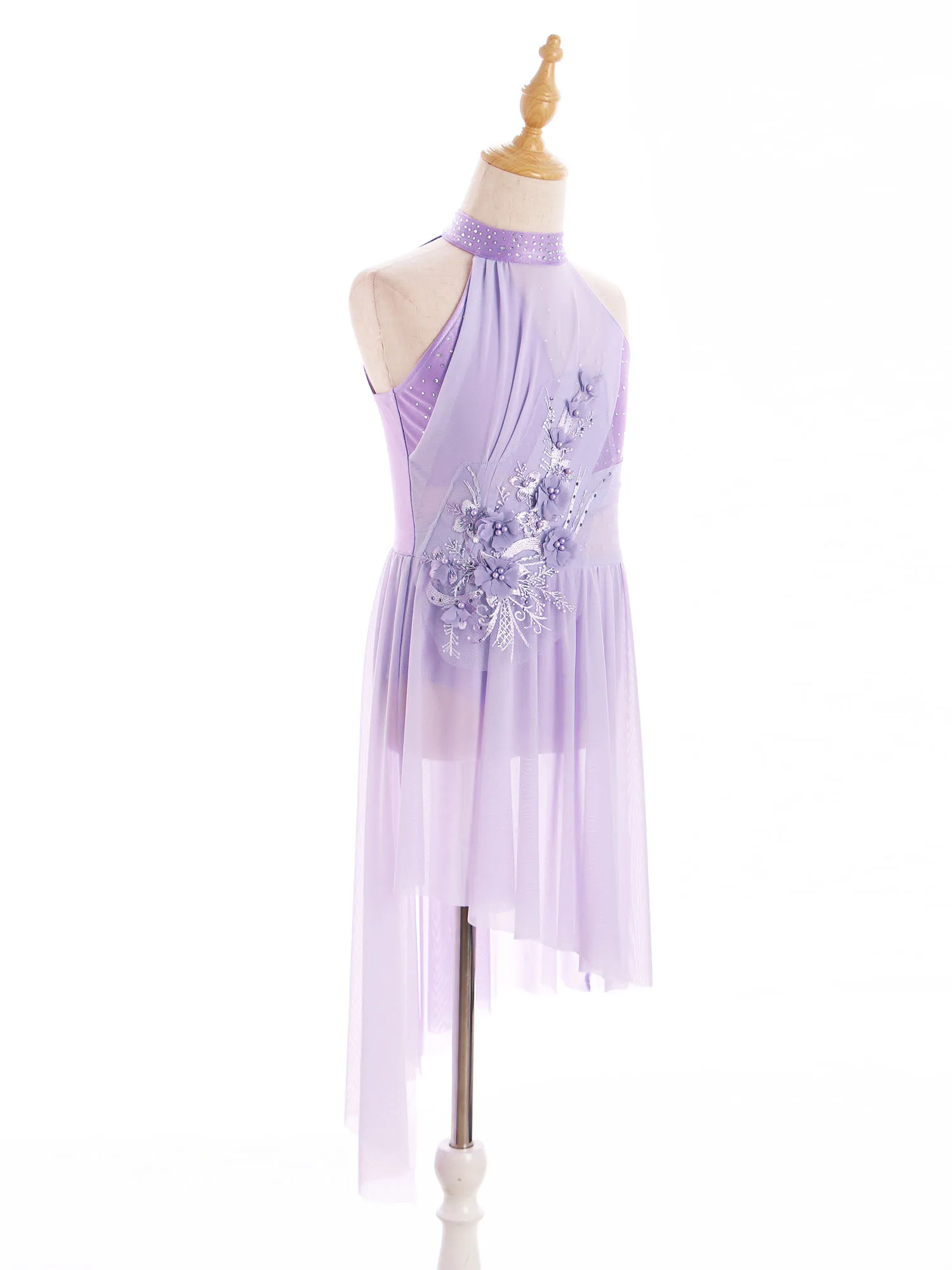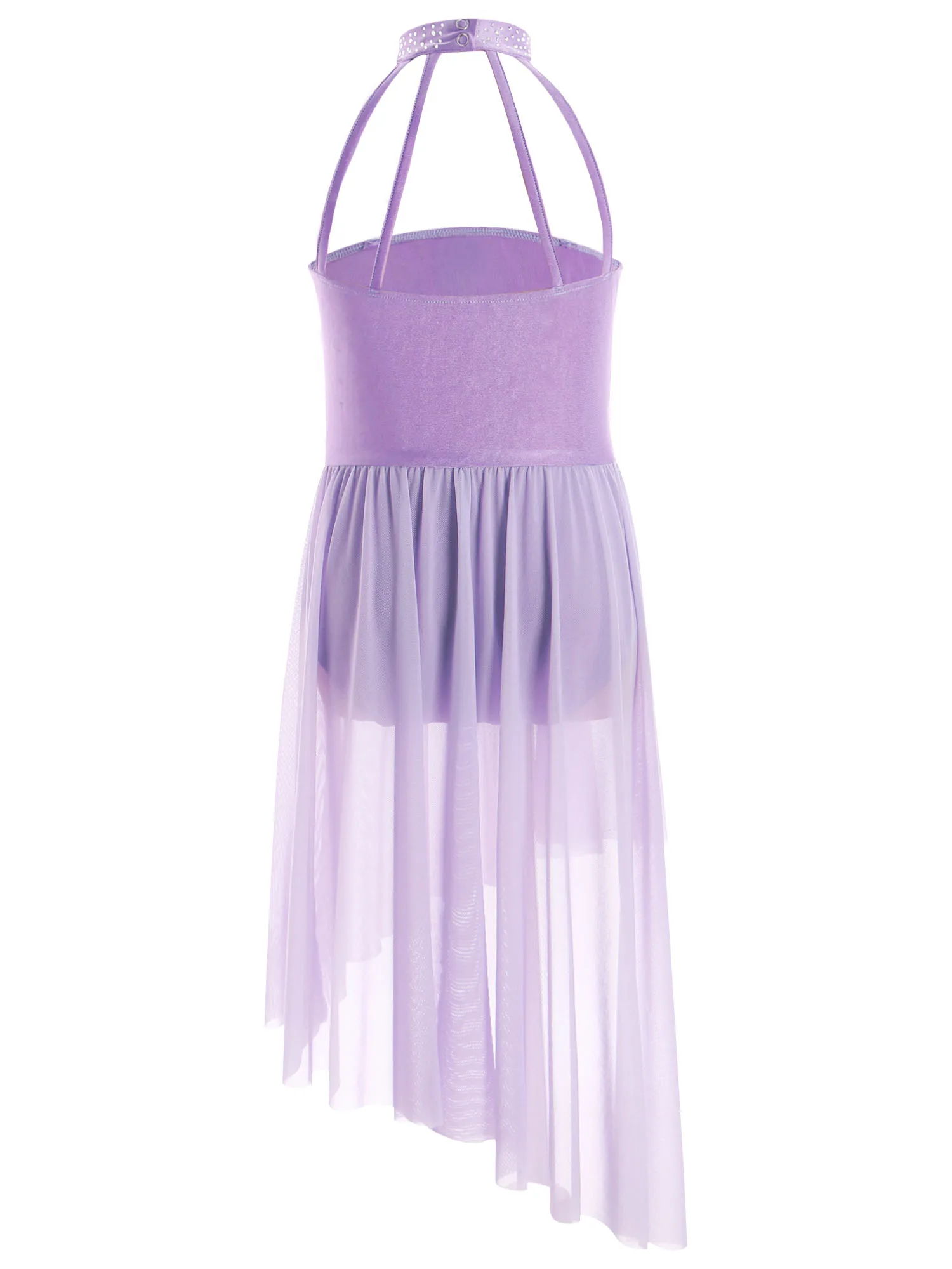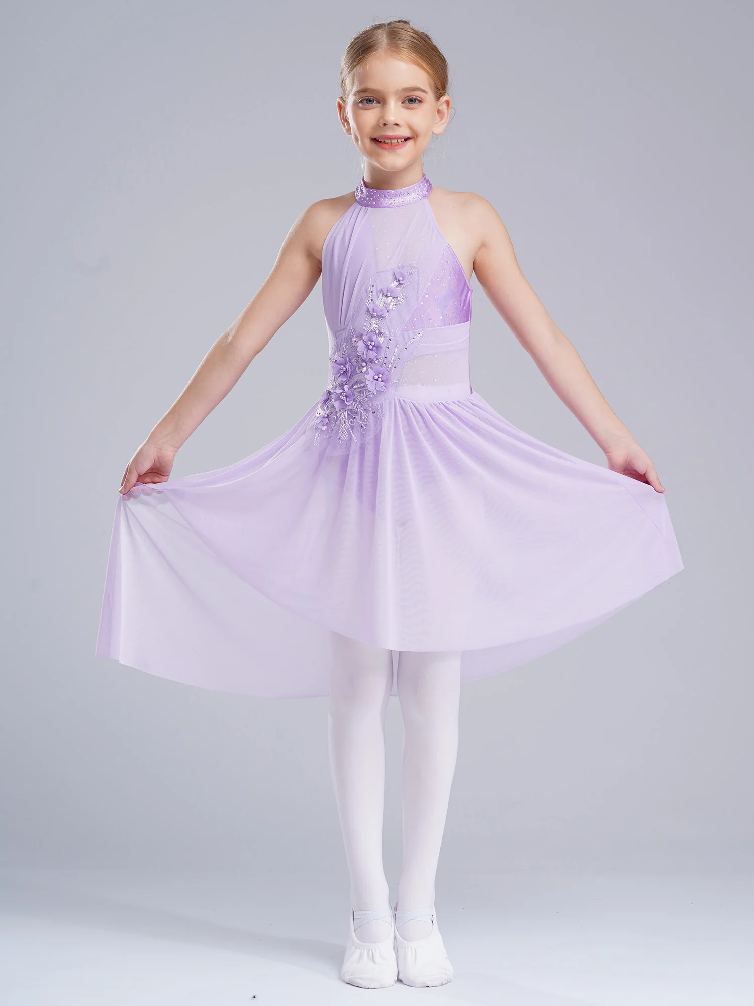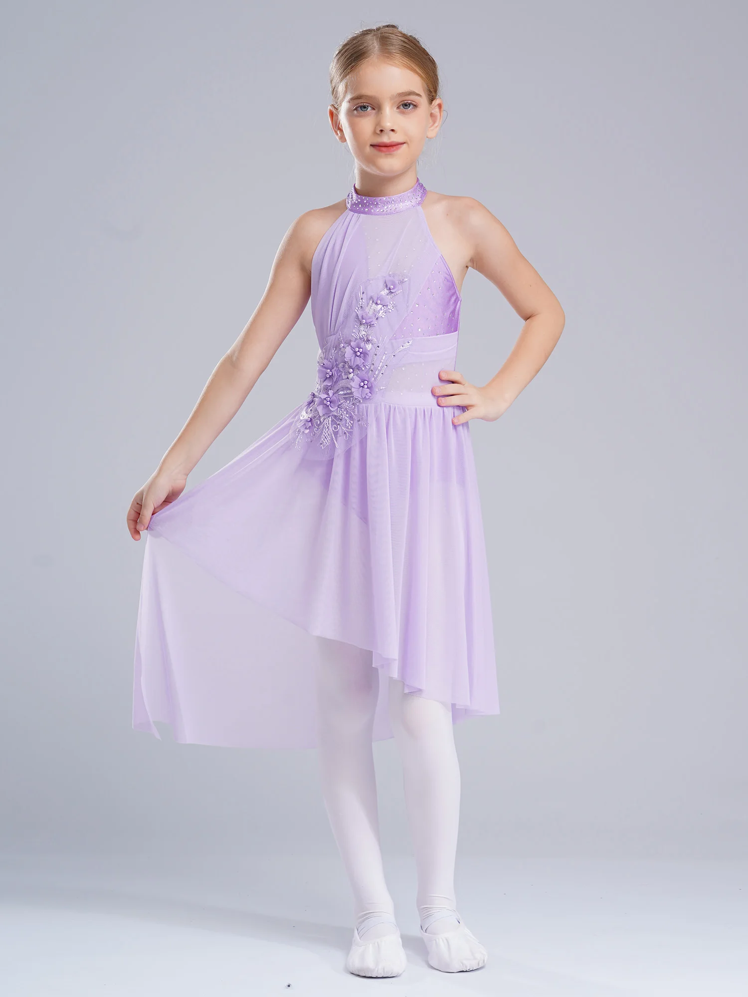 Applique Girls Lyrical Contemporary Dancewear High-Low Chiffon Splice Skirted Fancy Skating Gymnastic Costume Ballet Dresses