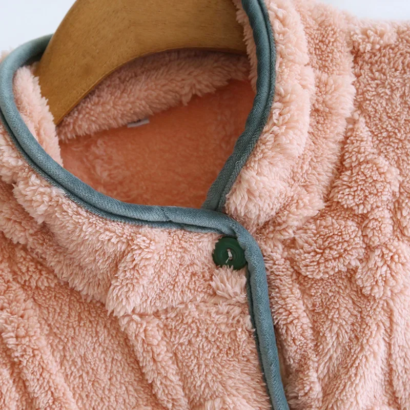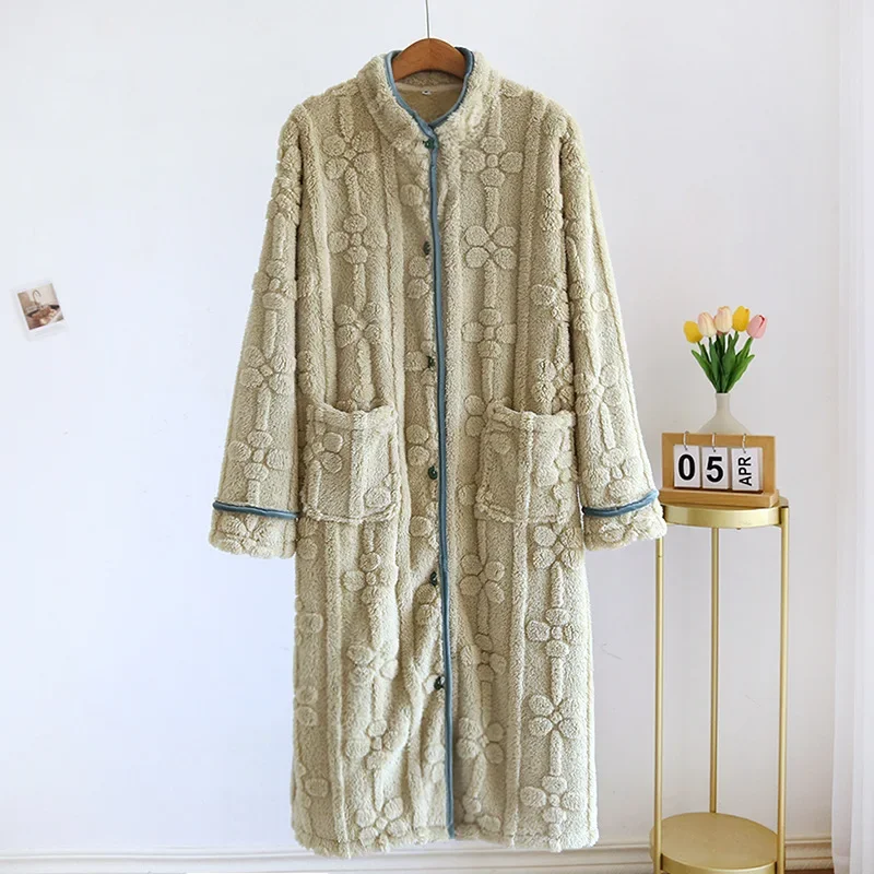 Autumn and Winter 2026 New Women’s Nightgown Flannel Sweet and cute Bathrobe Women’s Nightdress Stand collar Button Home Dress