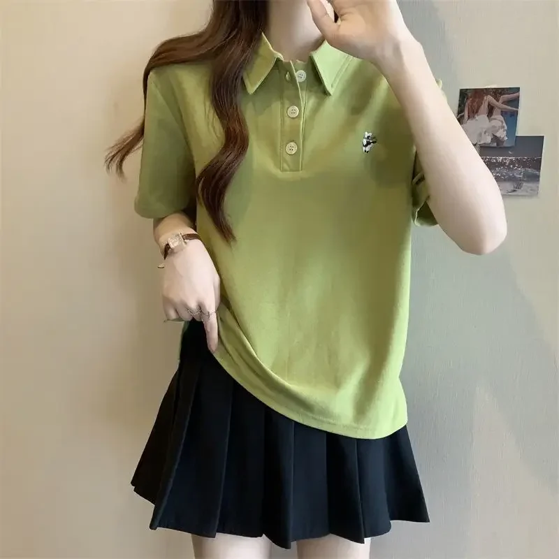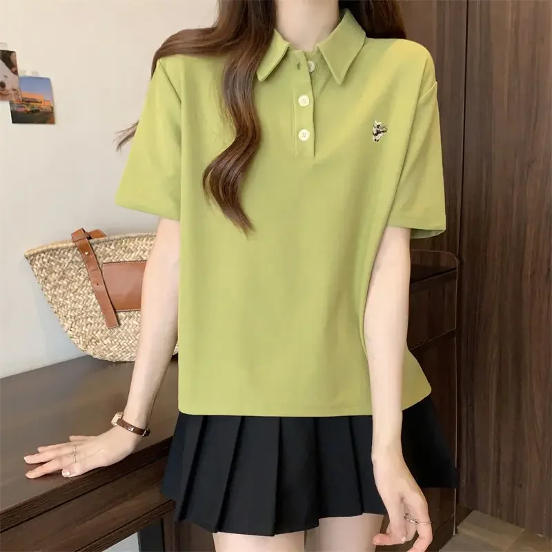 Baggy Polo Neck T Shirt for Women Short Sleeve Woman Tshirt Fashion Women’s Clothing 2025 Trending Goth Korean Elegant Sale Tee