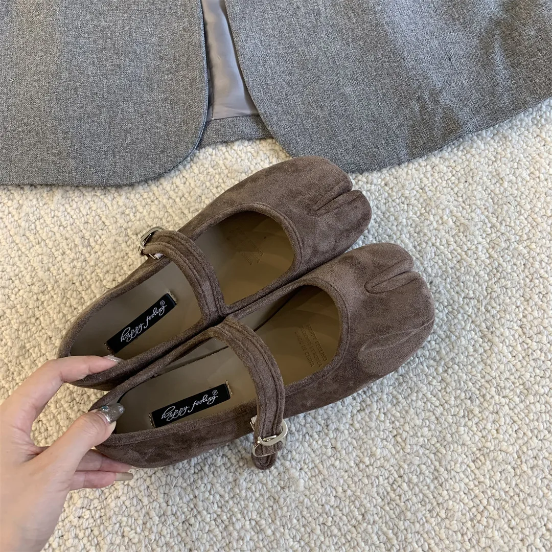 Bailamos New Brand Women Spilt Toe Flats Round Toe Shallow Slip On Ladies Casual Ballet Shoes Soft Leather Eelgant Dress Shoes M