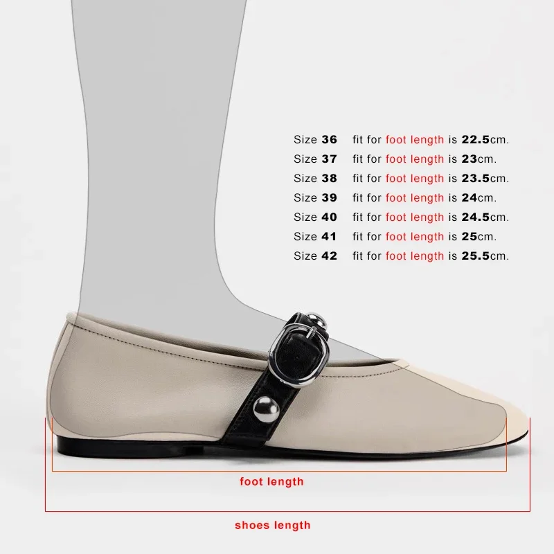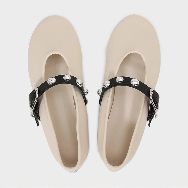 Ballet Flats for Ladies 2025 Spring Rivet Design Buckle Strap Soft Leather Women Footwear Light Comfortable Leisure Female Shoes
