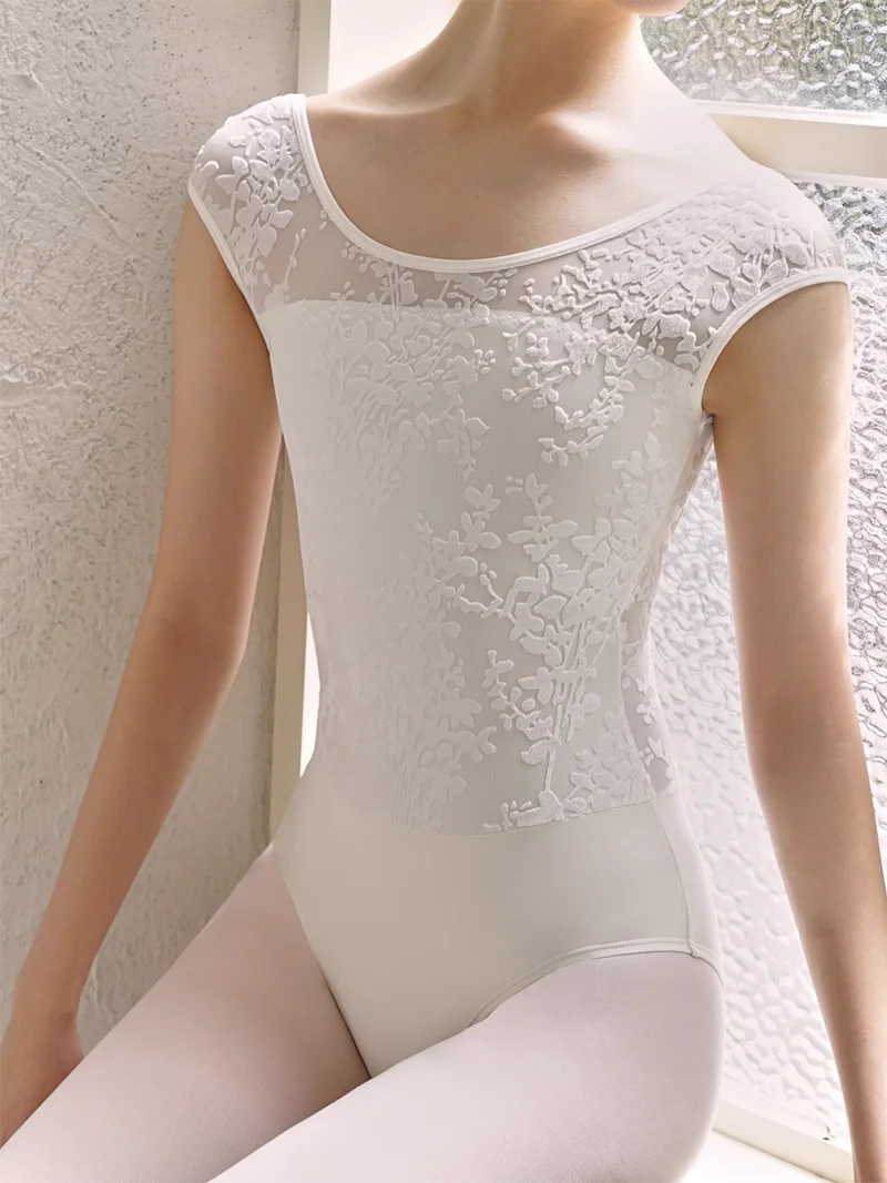 Ballet Leotard Women Elegant Lace Style Practice Ballet Dancing Clothes White Swan Professional Dance Team Gymnastics Coverall