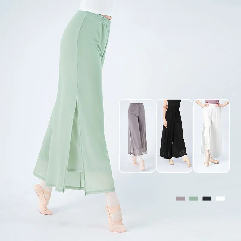 Ballet Pants Woman Sport Pants Fitness Yoga Pants Wide Leg Pants Double Layers Mesh Running Dance Pants Adult Long Pants
