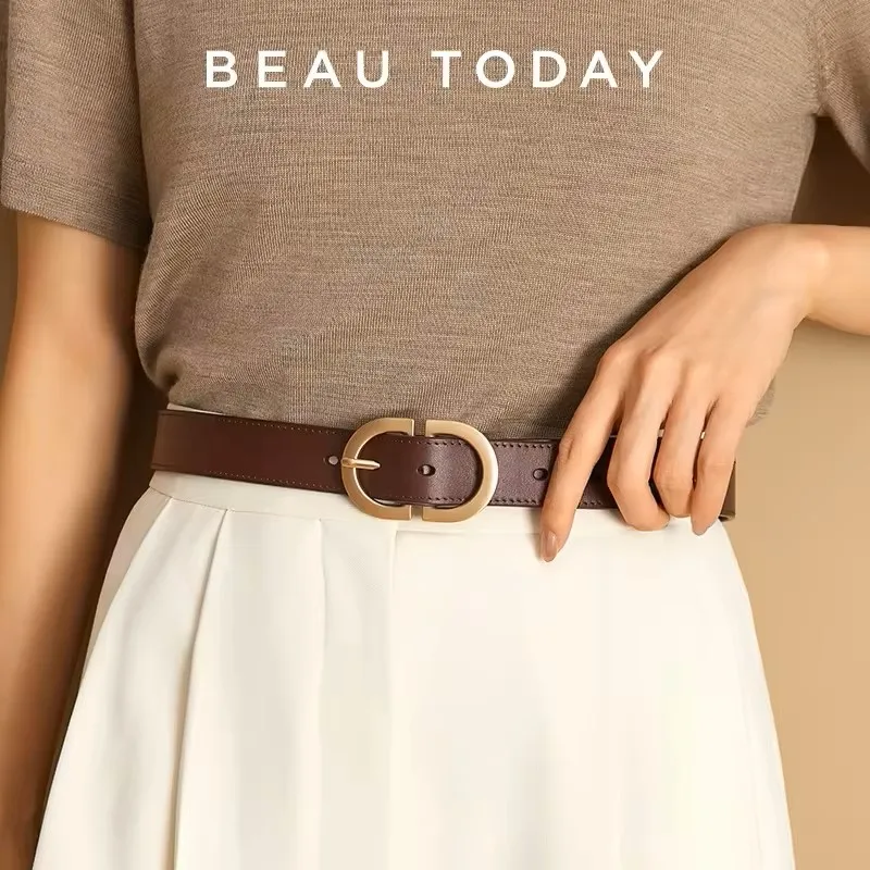 BEAUTODAY Belt Women Genuine Cow Leather Metal Oval Buckle Retro Simple Solid Ladies Jeans Dress Waistband Handmade 91012