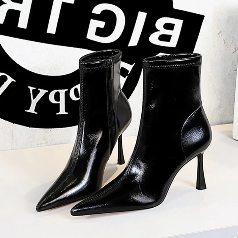 BIGTREE SEXY Ankle Boots Women Pointed Toe Thin Heels Winter Zipper Banquet Modern Shoes Zapatos Mujer