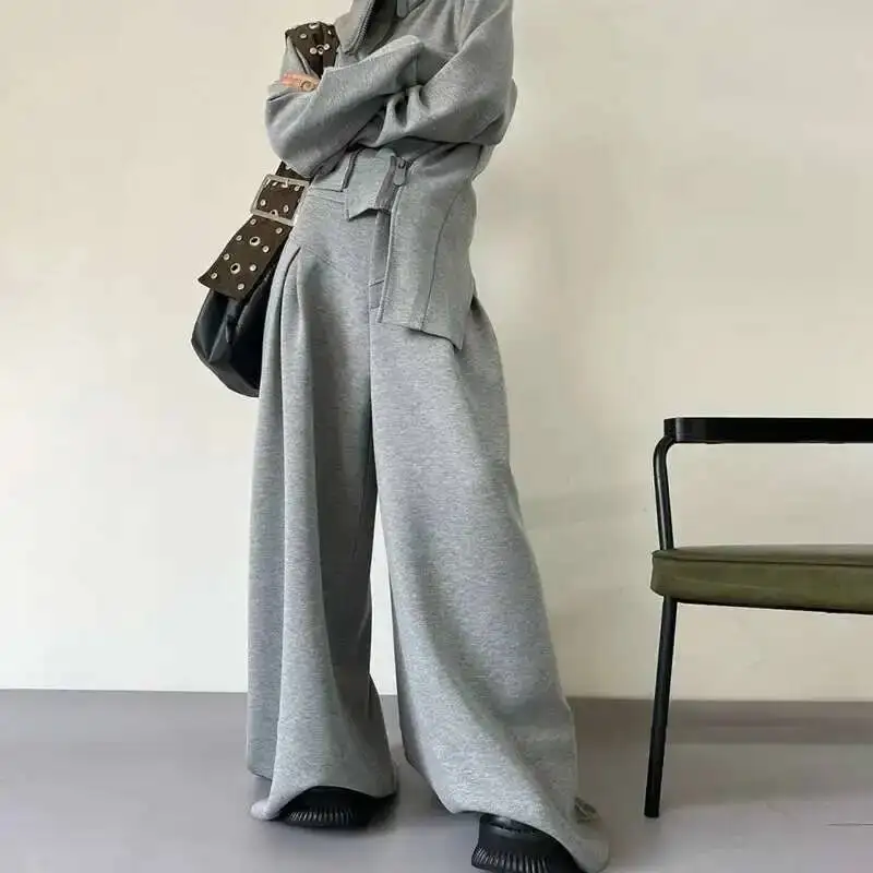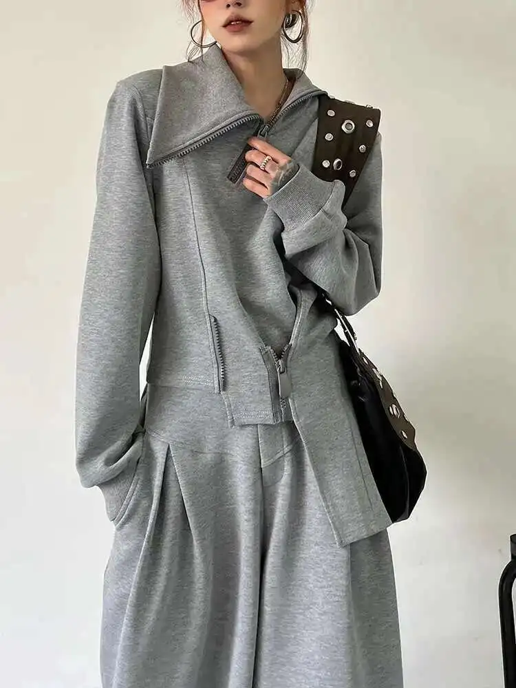 BJTZ Casual Irregular Sportswear Women’s Trendy Stand Collar Zipper Design Hooded High Waist Wide Leg Pants (Sold separately)