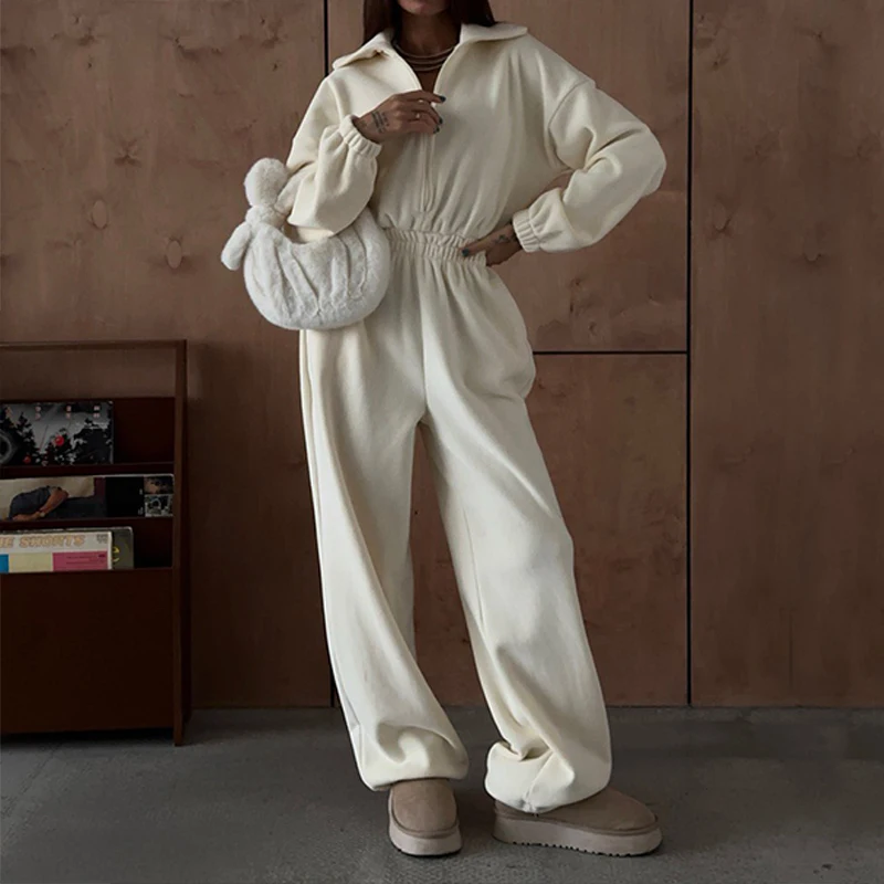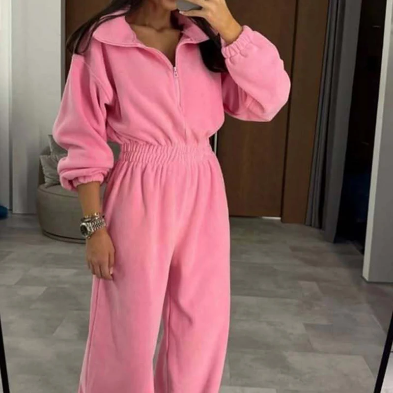 BKLD Hipster Trend Workout Lapel Jumpsuit Zipper Long Sleeves Solid High Elastic Waist Ruched Fall Winter 1Piece Romper Overalls