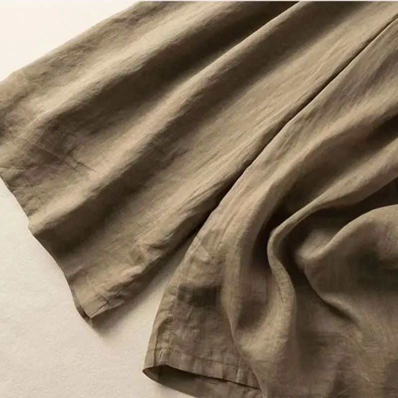 Black Cotton Linen Casual Elastic High Waist Loose Women’s Pants Korean Fashion Wide Leg Ankle-Length Pants For Women 2025