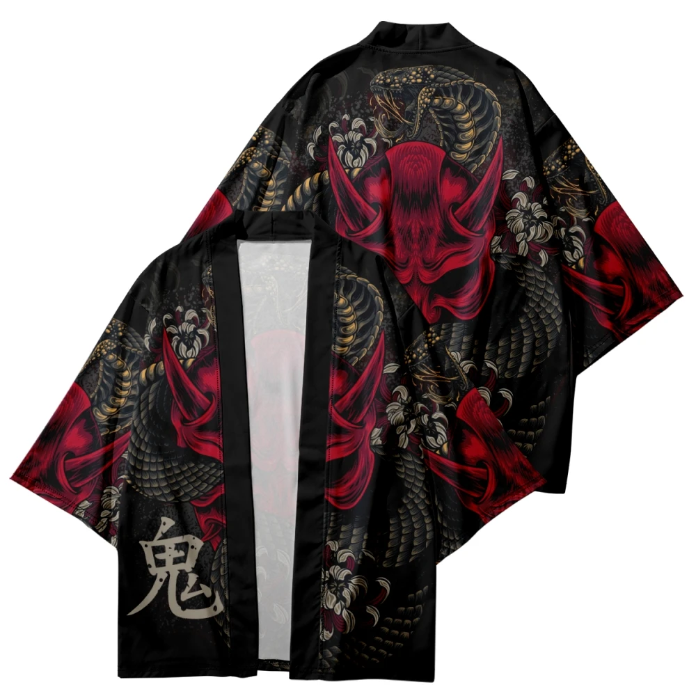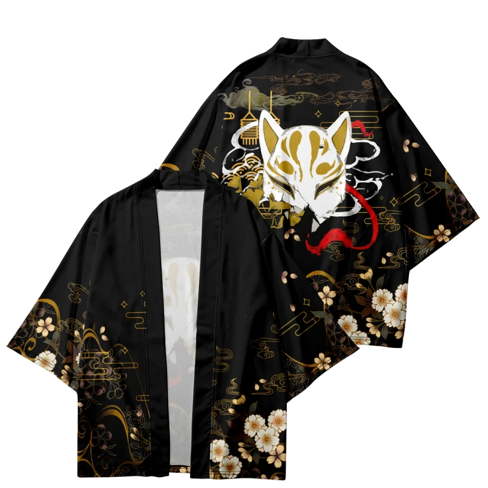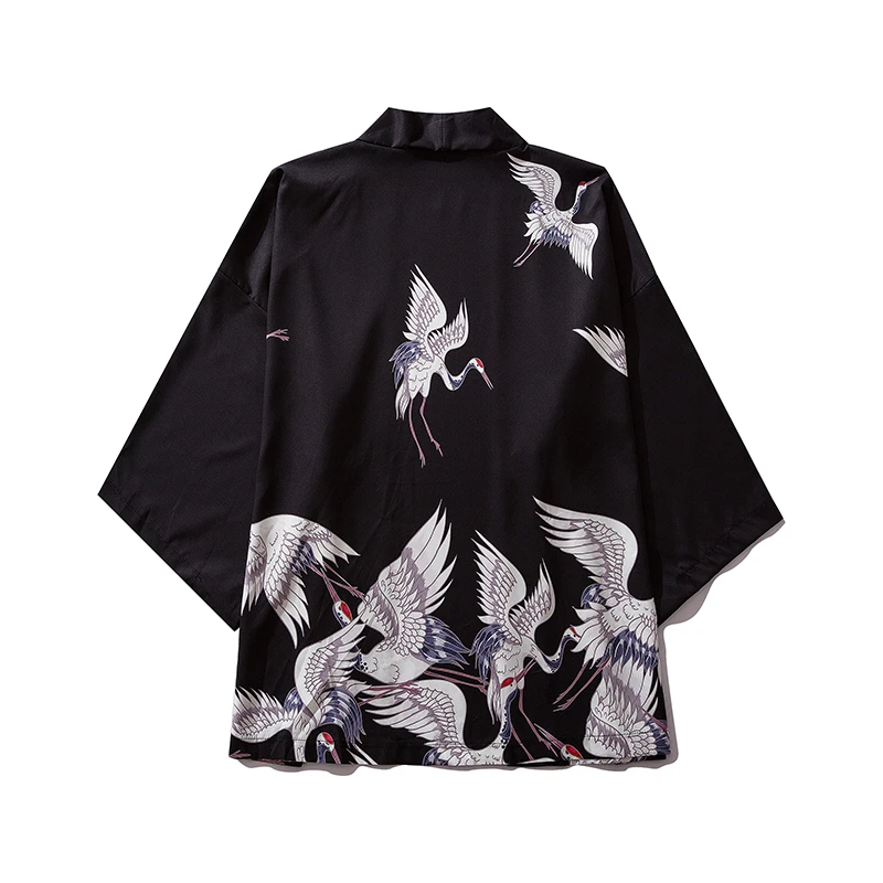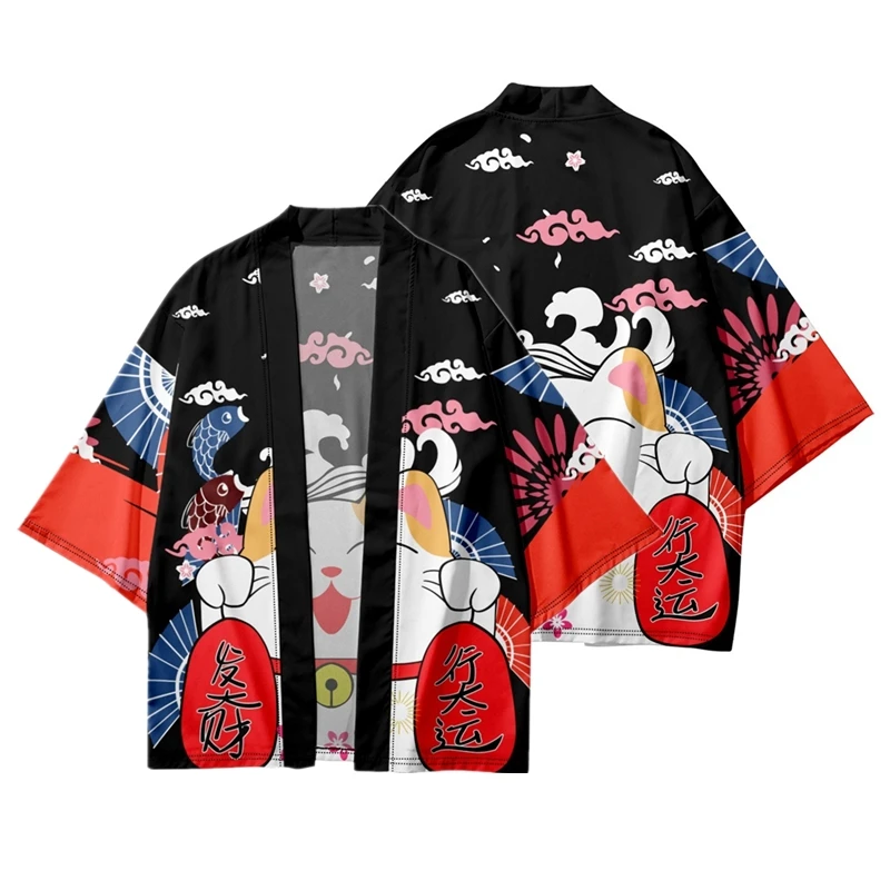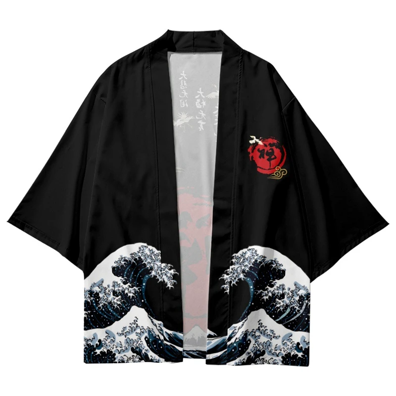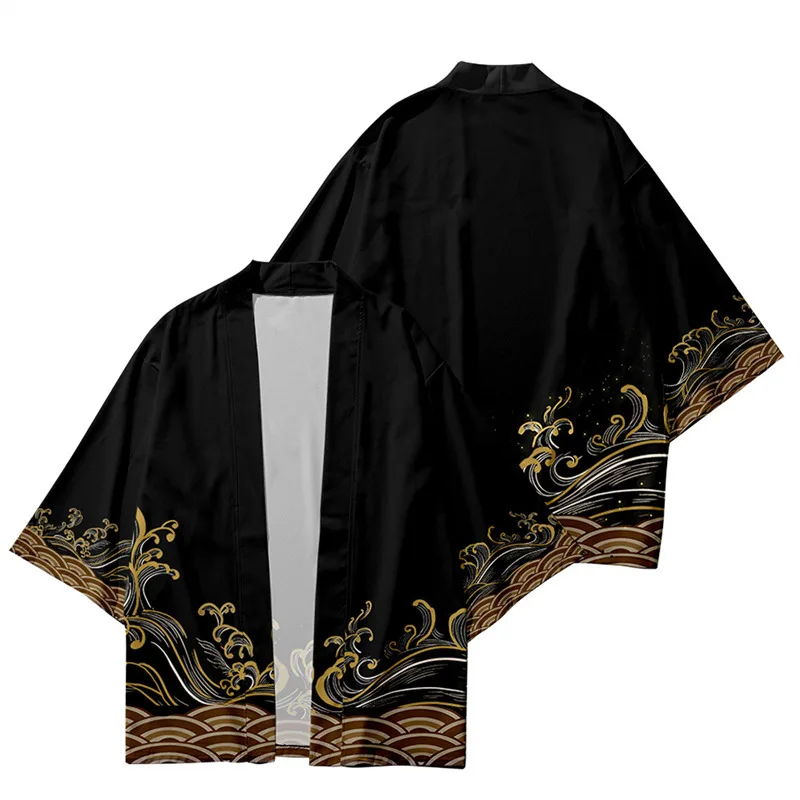 Black Kimono Cardigan Women Men Japanese Obi Male Yukata Men’s Haori Japanese Wave Carp Print Coat Traditional Japan Clothing