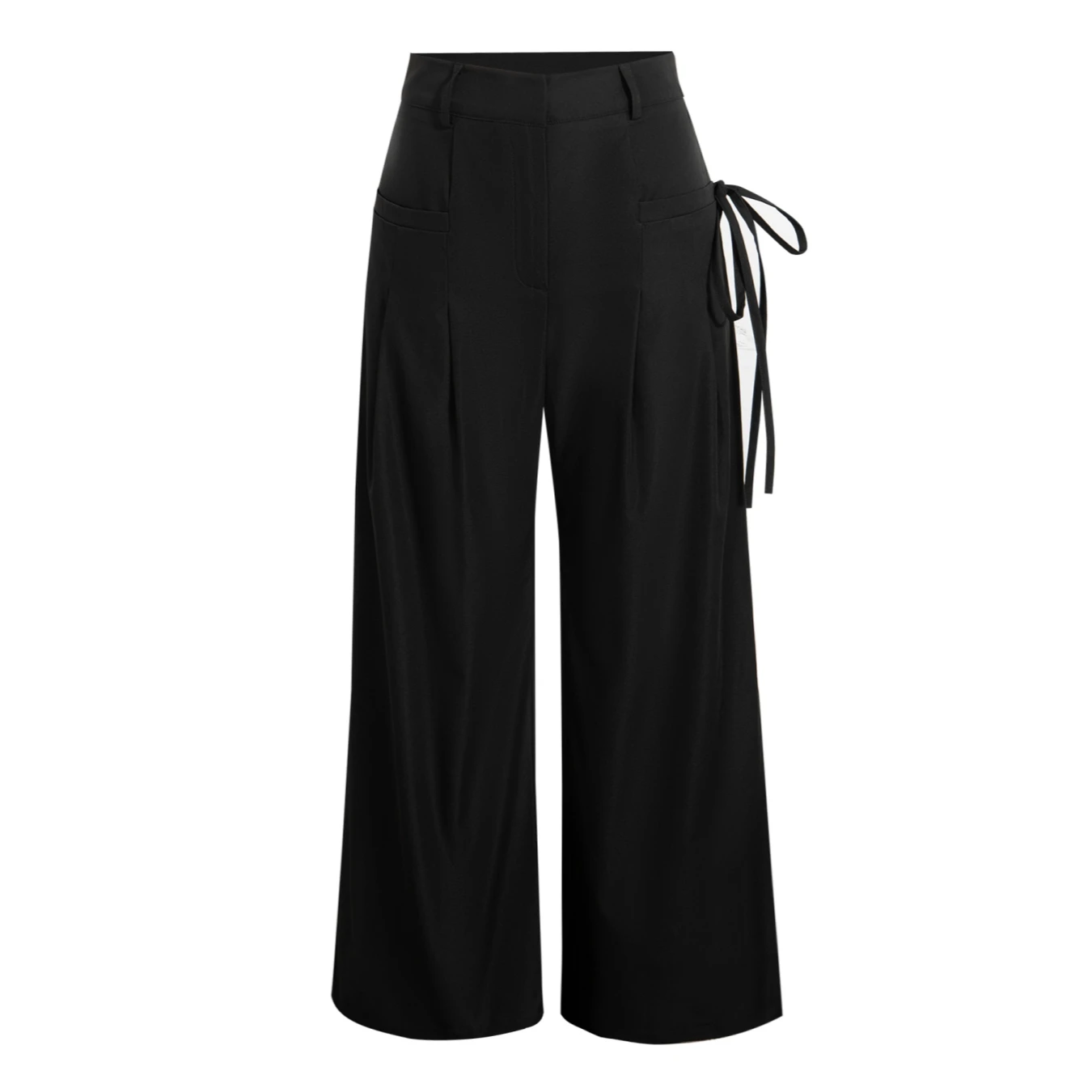 Black Shirring Wide Leg Pants Women High Waist Casual Loose Trousers Streetwear Korean Retro Office Basic Y2K Lady Fashion